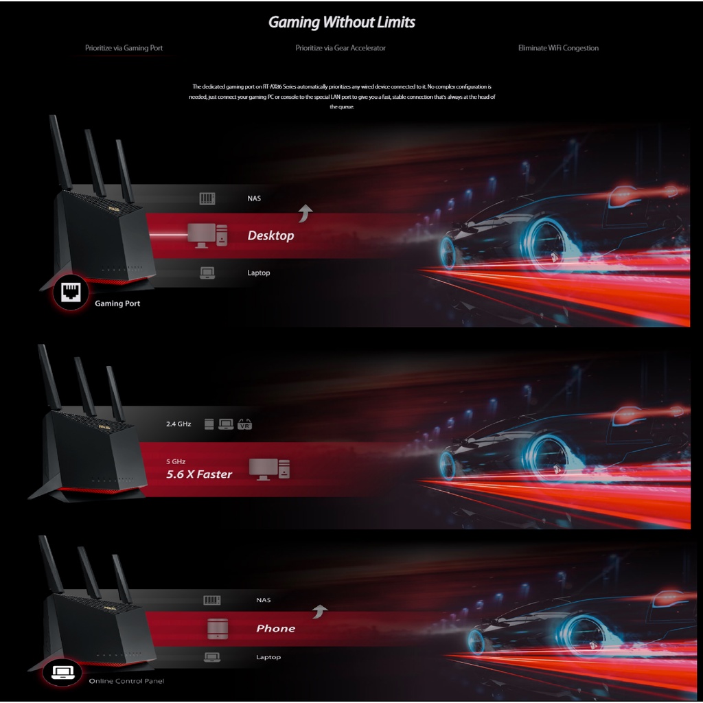 ASUS RT-AX86U | RT-AX86S AX5700 Dual Band WiFi 6 Gaming Router AiMesh WiFi Router (Refurbished / Used)