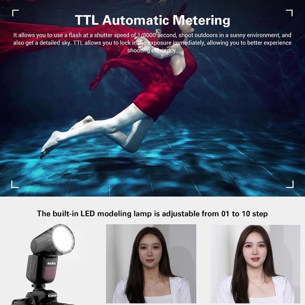 GODOX V1 Camera Flash for Sony Canon, Nikon, 2.4G TTL External Sony Flash Speedlite, 2980mAh Rechargeable Li-ion Battery