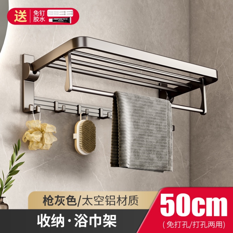 Rak bilik air Toilet rack Towel Rack Bathroom Storage Hardware Rack Folding Roll Paper holder Toilet Brush Soap Rack Punch-Free