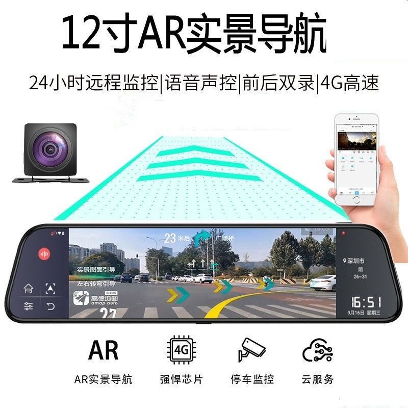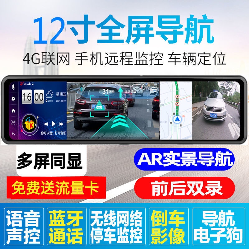 Free Shipping Car Recorder Car Camera Dashcam 新款12寸4G行车记录仪双镜头高清夜视流媒体后视镜导航倒车一体机 Perakam Kamera Kereta
