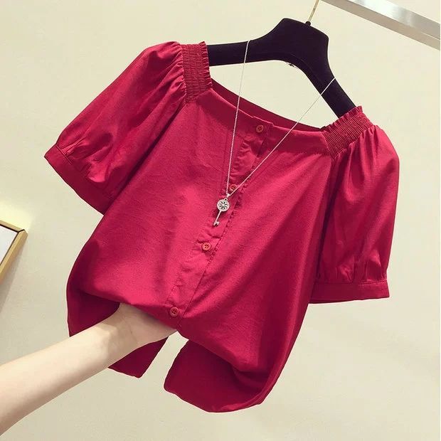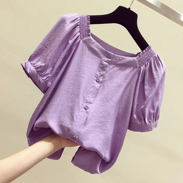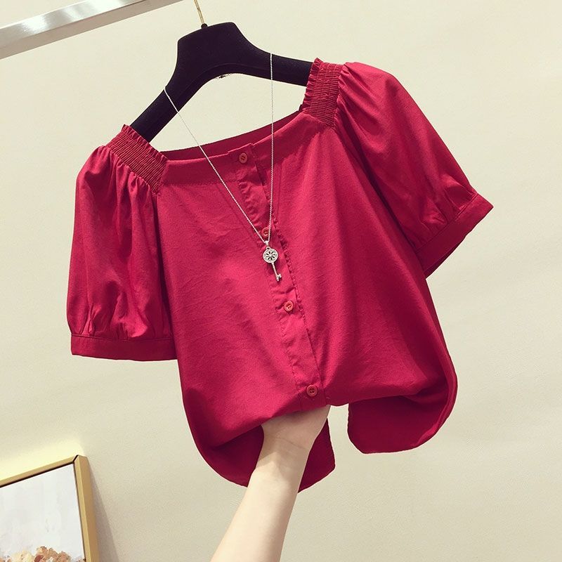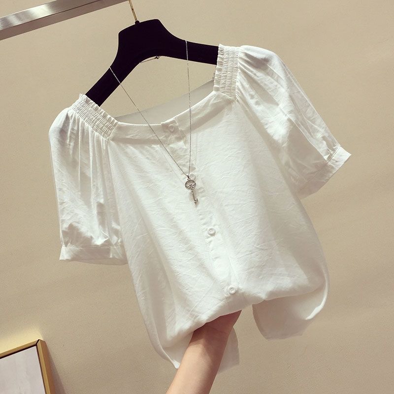 Temperament All-match Chiffon Shirt One-shoulder Clavicle Cropped Top Women