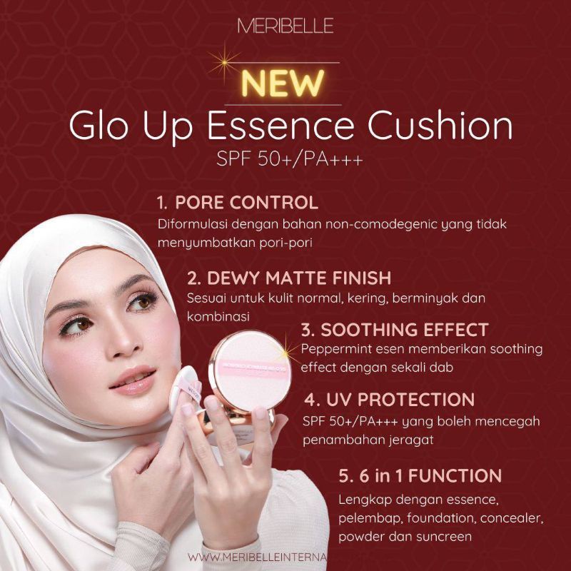 [READY STOCK] ORI HQ 6IN1 GLO UP ESSENCE BB CUSHION MERIBELLE FREE GIFT🎁