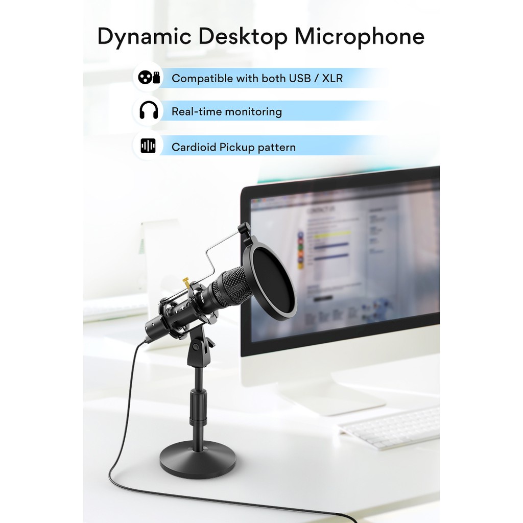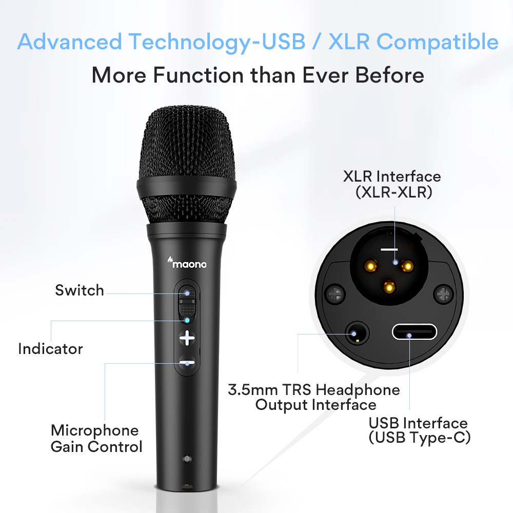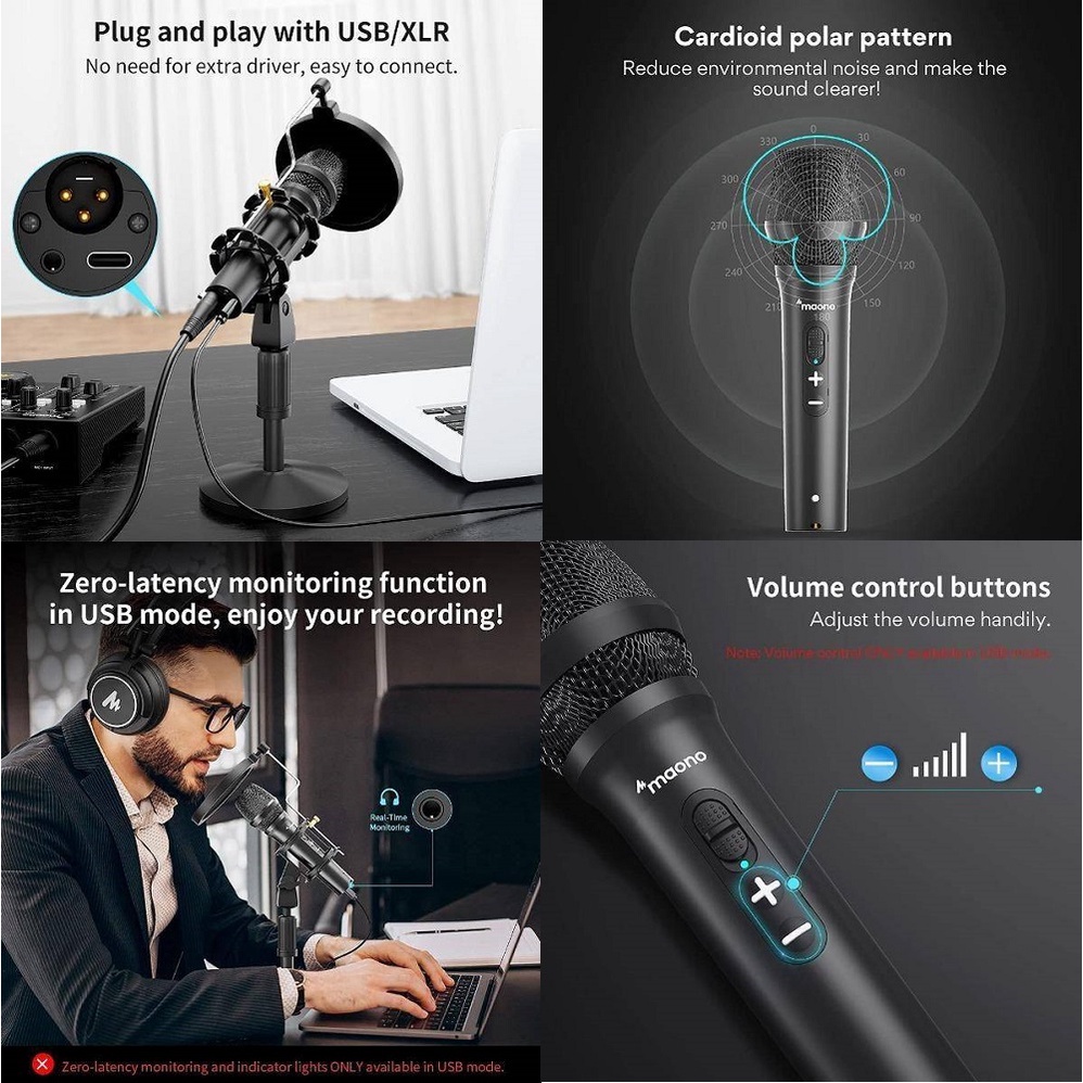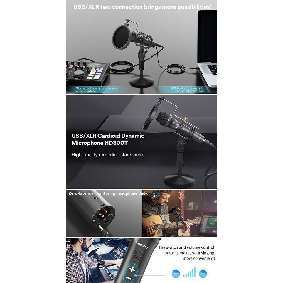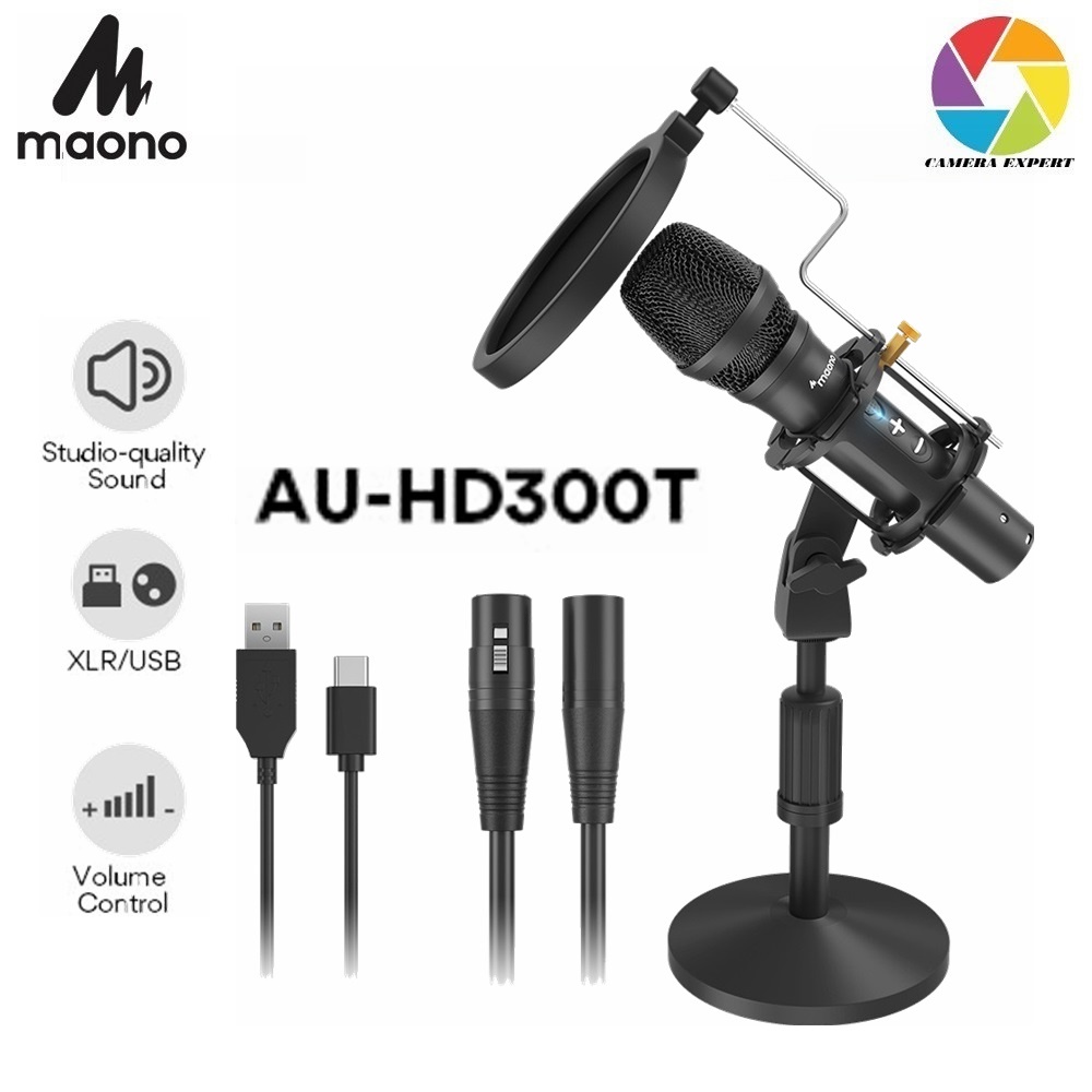 ( READY STOCK ) MAONO AU-HD300T Professional Cardioid Directional Microphone Dynamic Microphone USB/XLR Microphone USB M