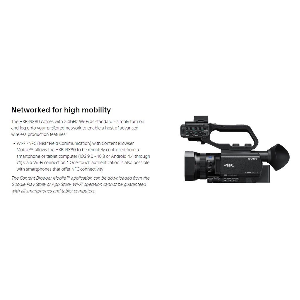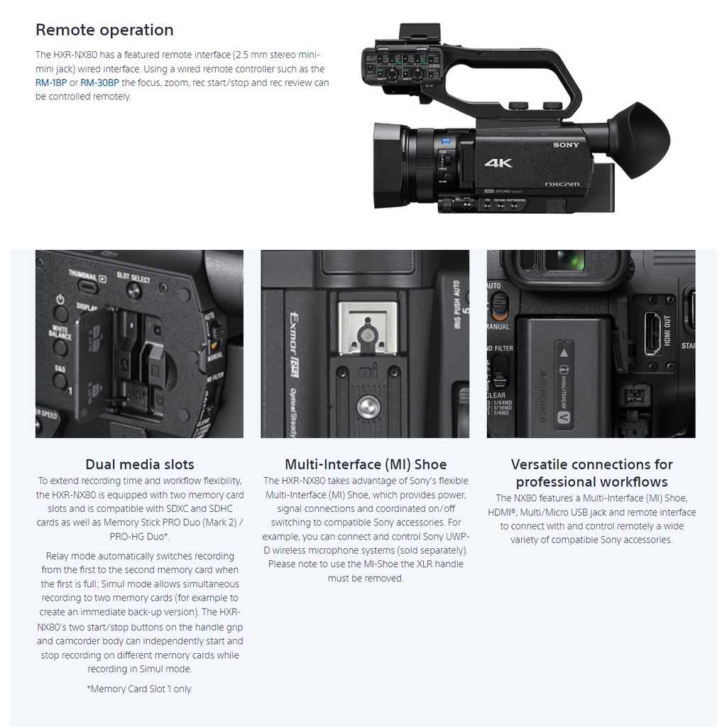 Sony HXR-NX80 4K NXCAM with HDR & Fast Hybrid AF