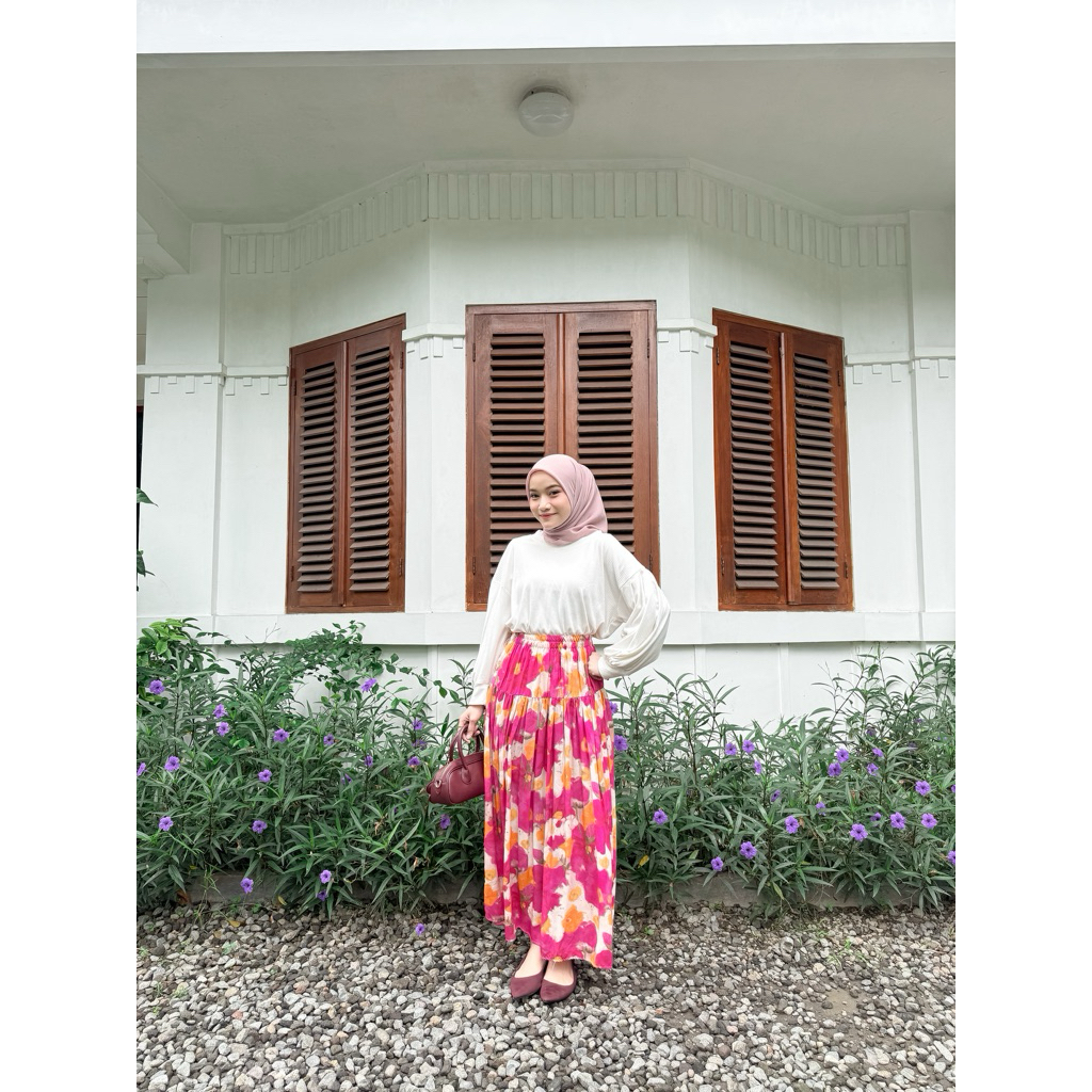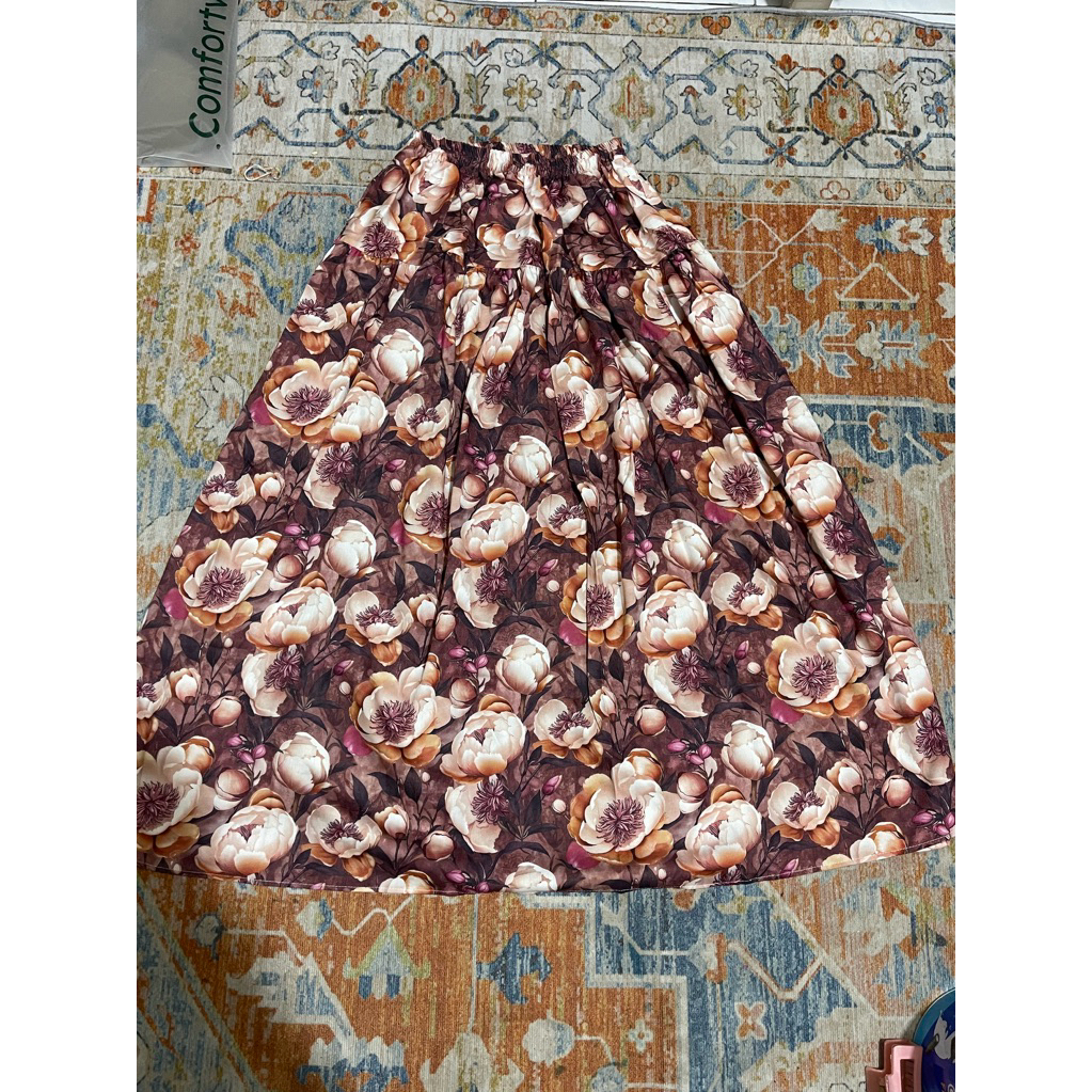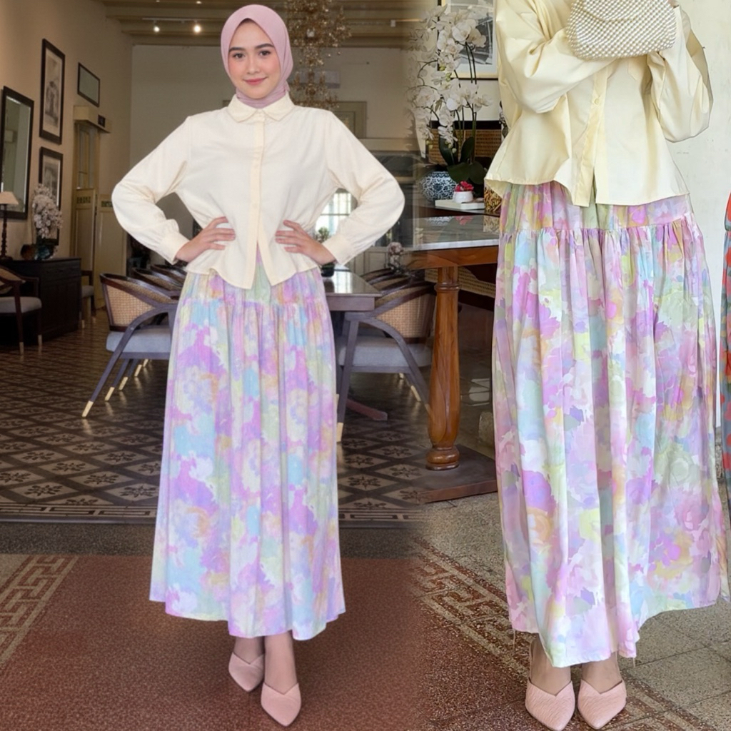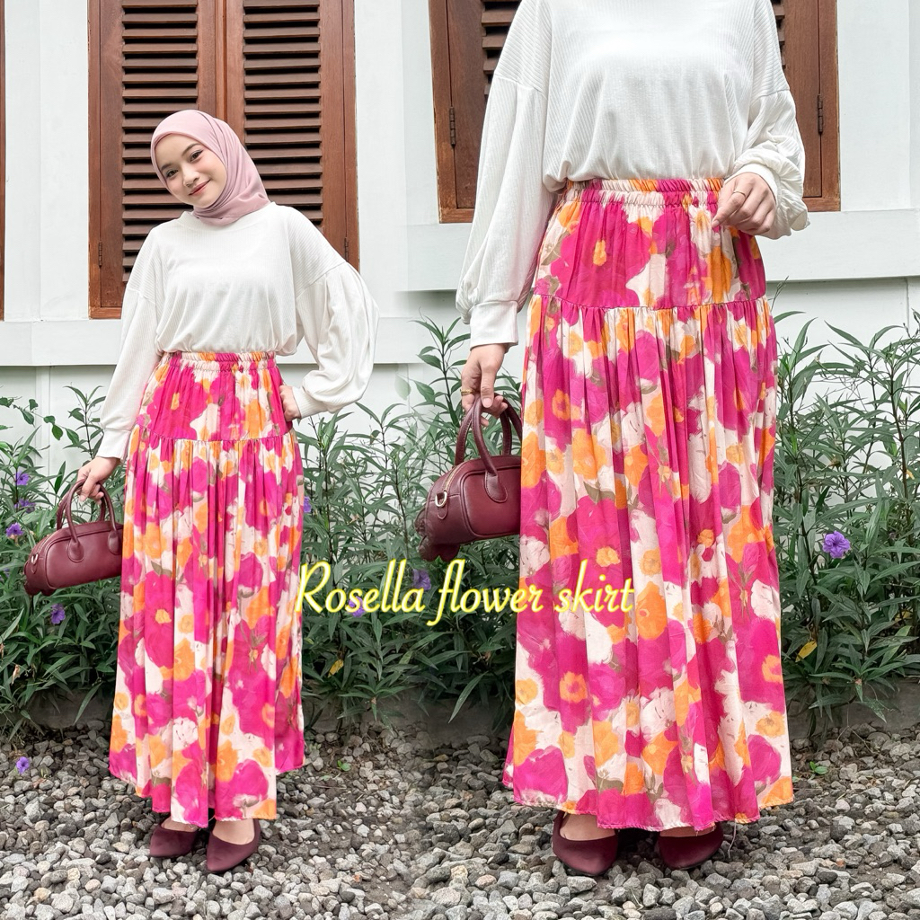 Rosella Women's Skirt with Bright Floral Pattern, Ruffled Floral Skirt, Wide Mayung, Rayon Material Pleated Skirt Long Skirt Floral Skirt