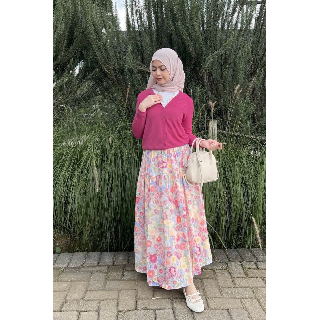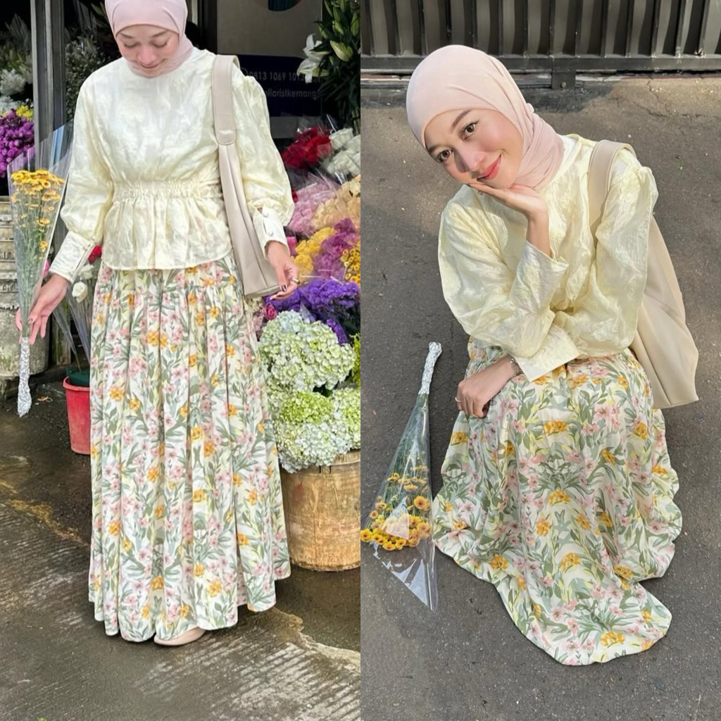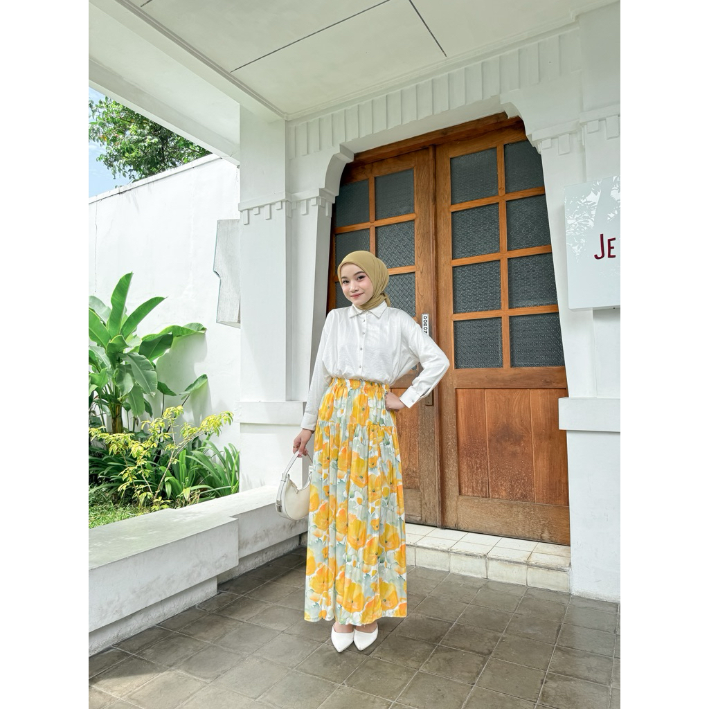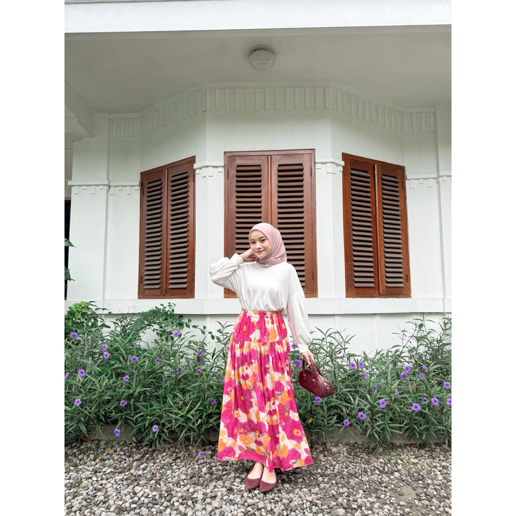 Rosella Women's Skirt with Bright Floral Pattern, Ruffled Floral Skirt, Wide Mayung, Rayon Material Pleated Skirt Long Skirt Floral Skirt