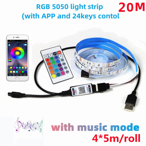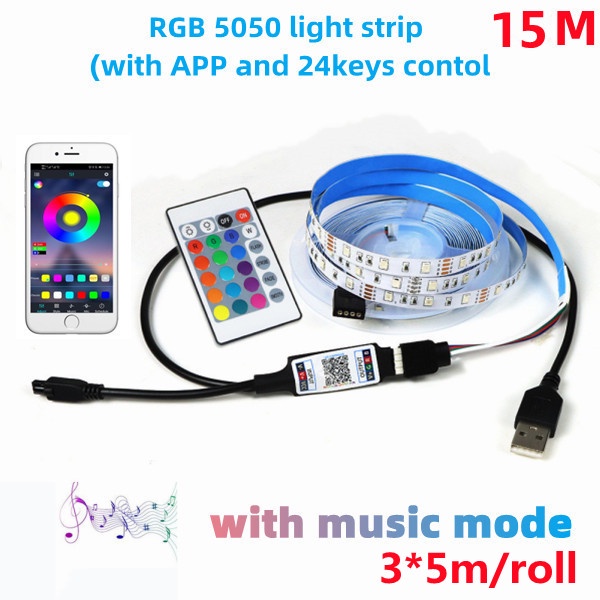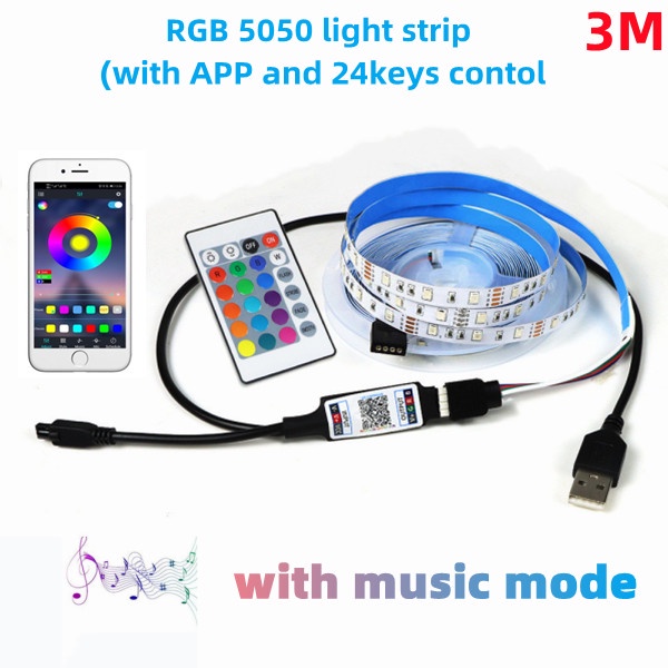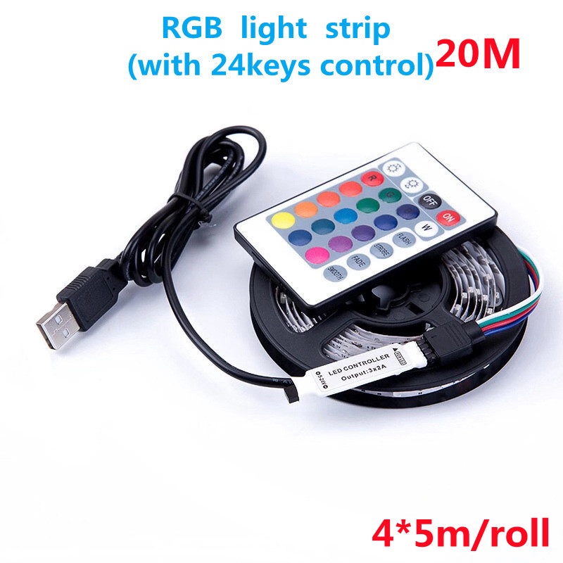 LED strip RGB with 24-key remote control SMD 5050 color variable TV background light USB power supply 30led/mDc5V flexible strip 1M 2M 3M 4M 5M