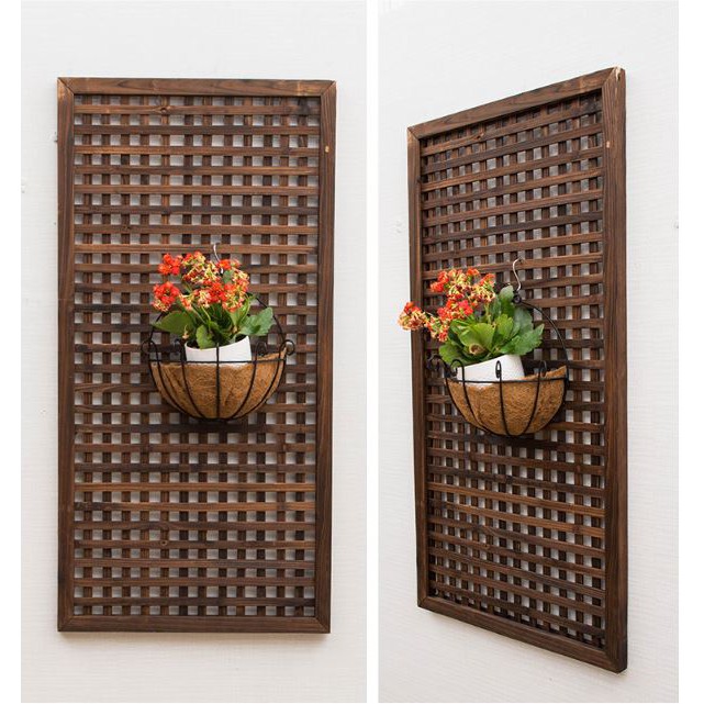 Courtyard Balcony Grid Fence Climbing Rattan Flower Frame Partition Carbonized Solid Wood Outdoor Indoor Screen Wall