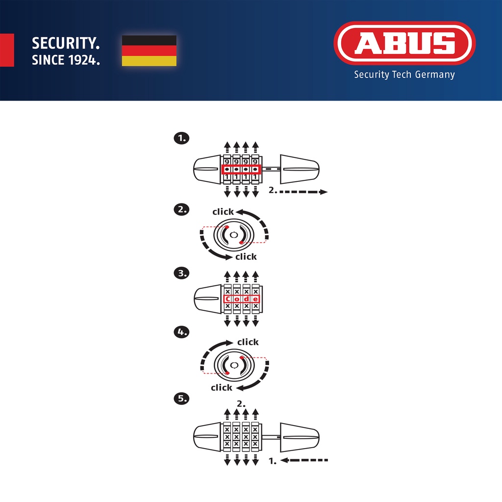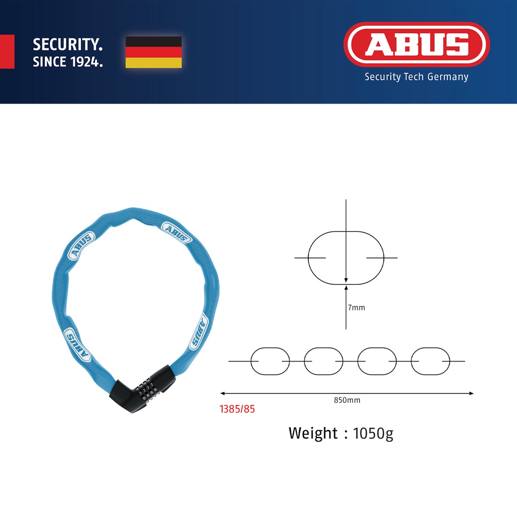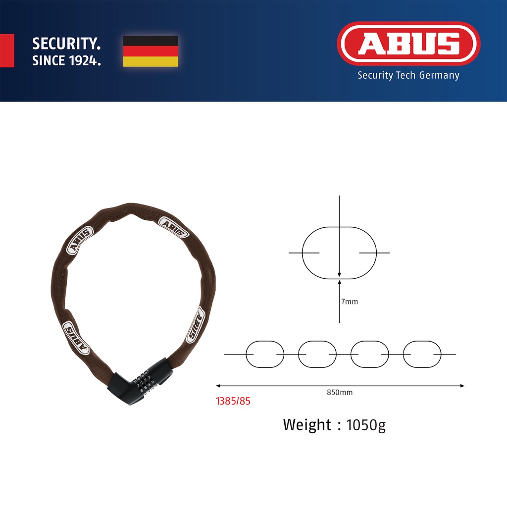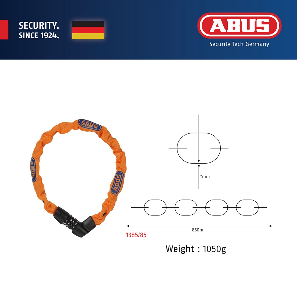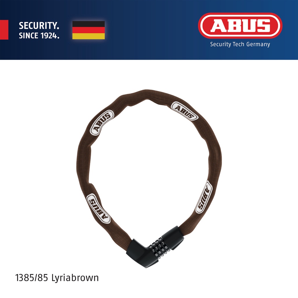 Abus 1385/85 Tresor Combination Chain with Fabric Sleeve Lock, 85cm. Colour: Black, Blue, Coral Red, Lyriabrown, Orange