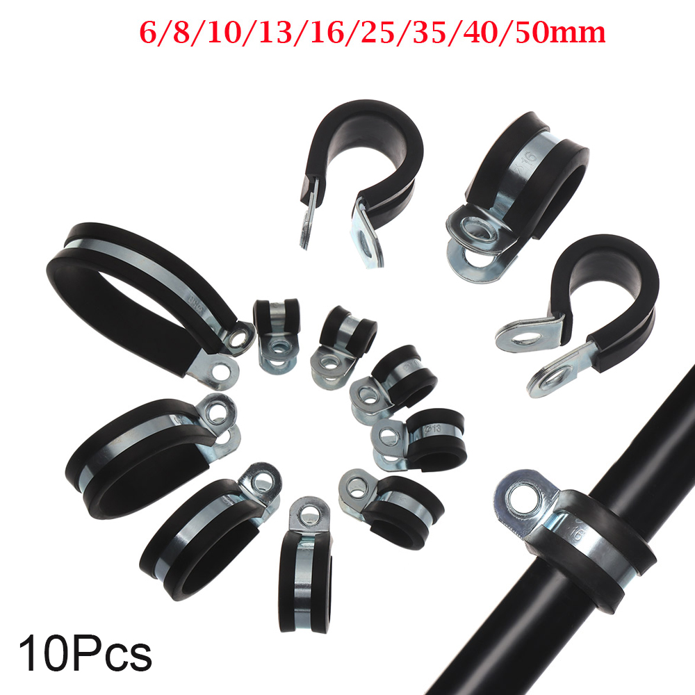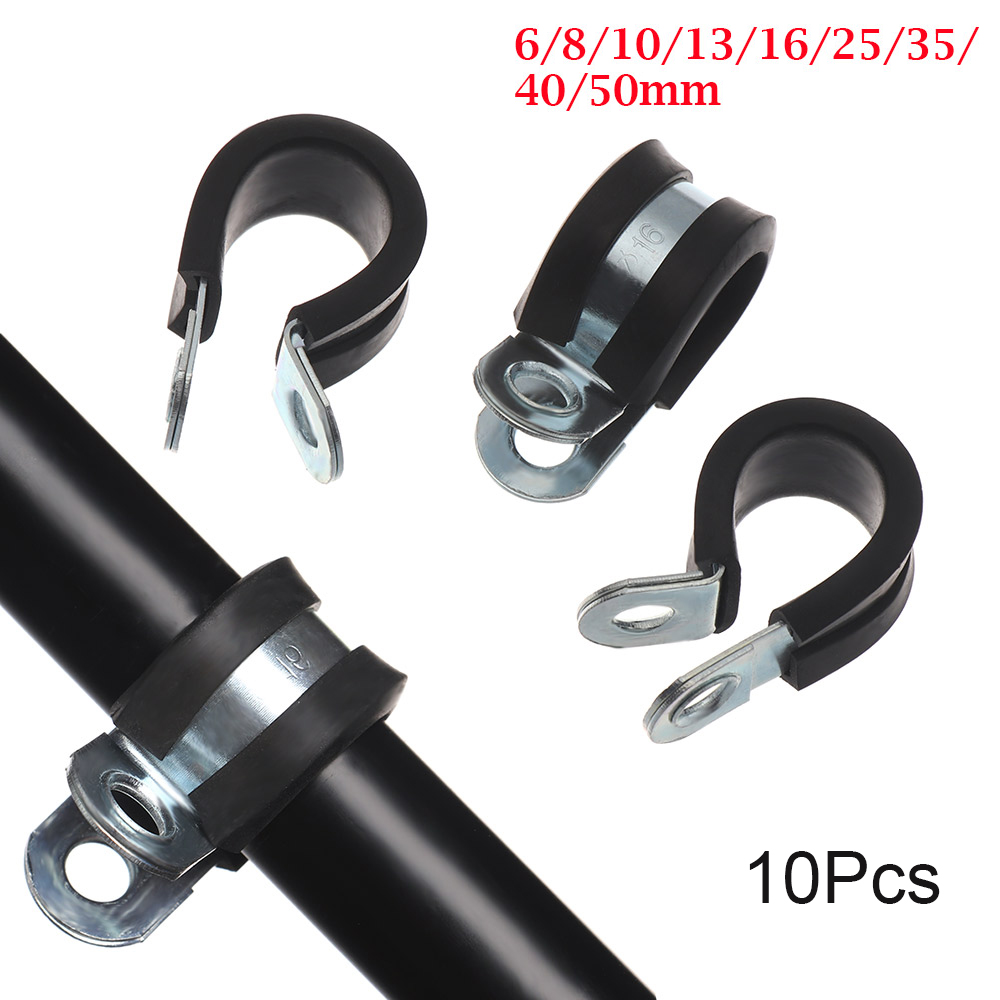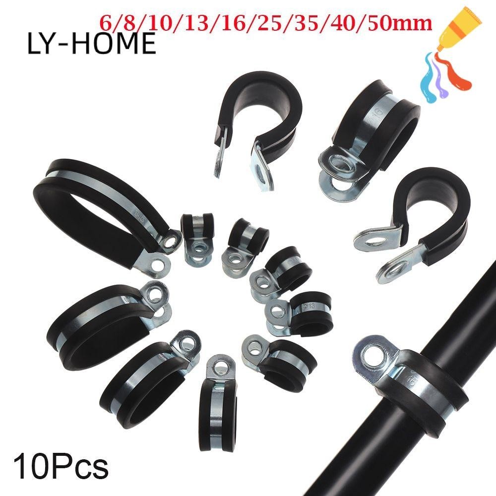 LY Hot sale Wiring Hose Clamp Useful Cable Fasteners Rubber Lined P Clips Electrical Fittings High quality Durable Hardware Metal Pipe Mounting Fix 10Pcs