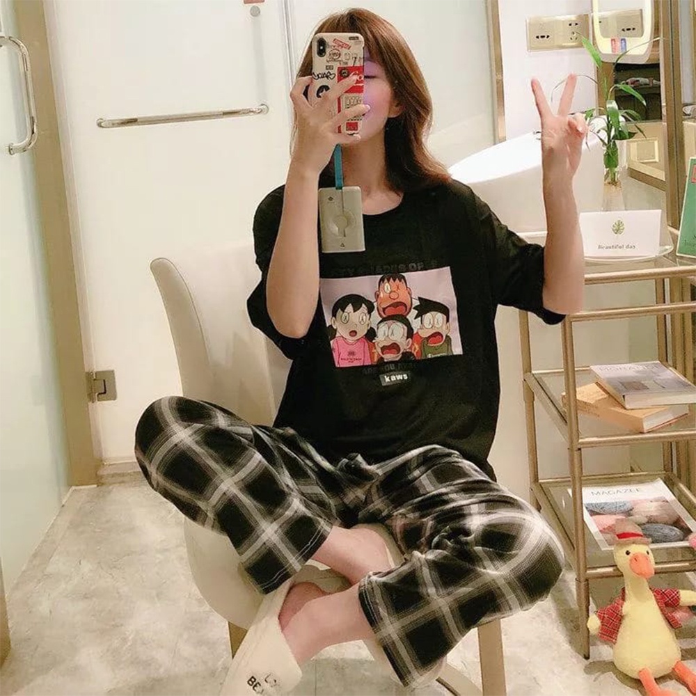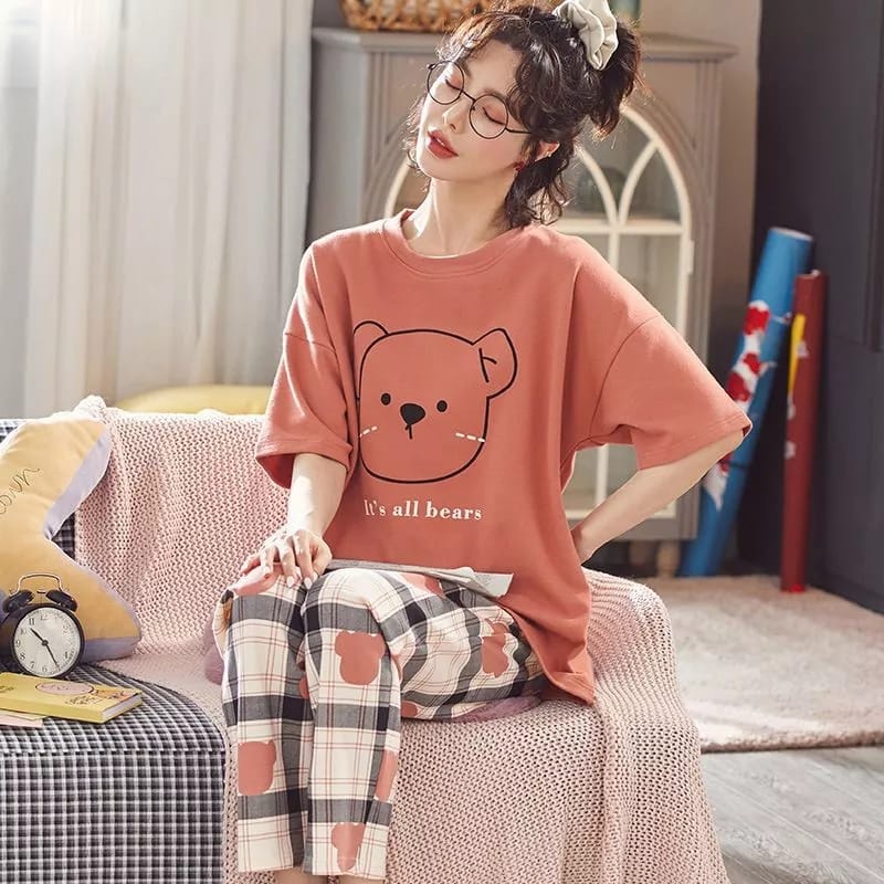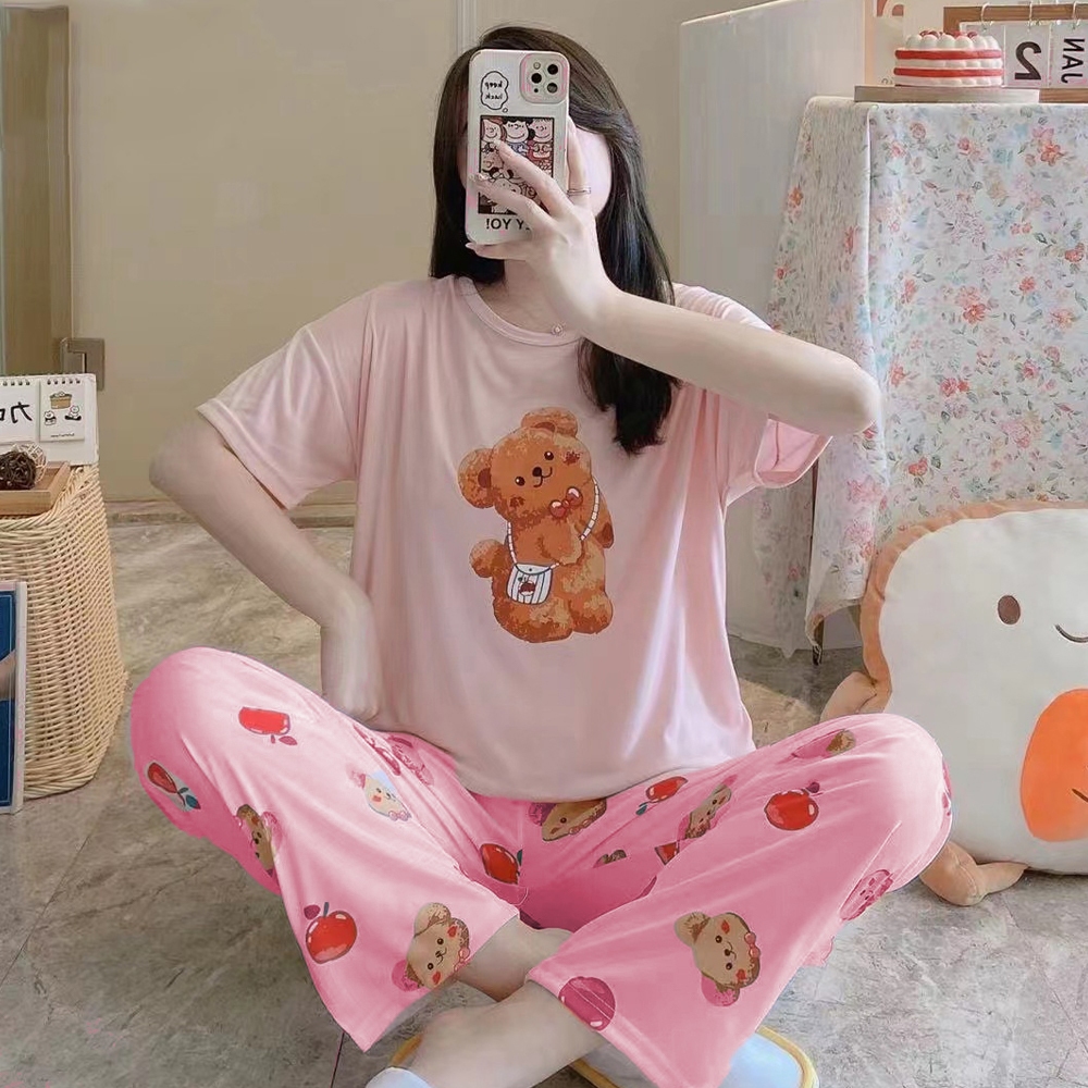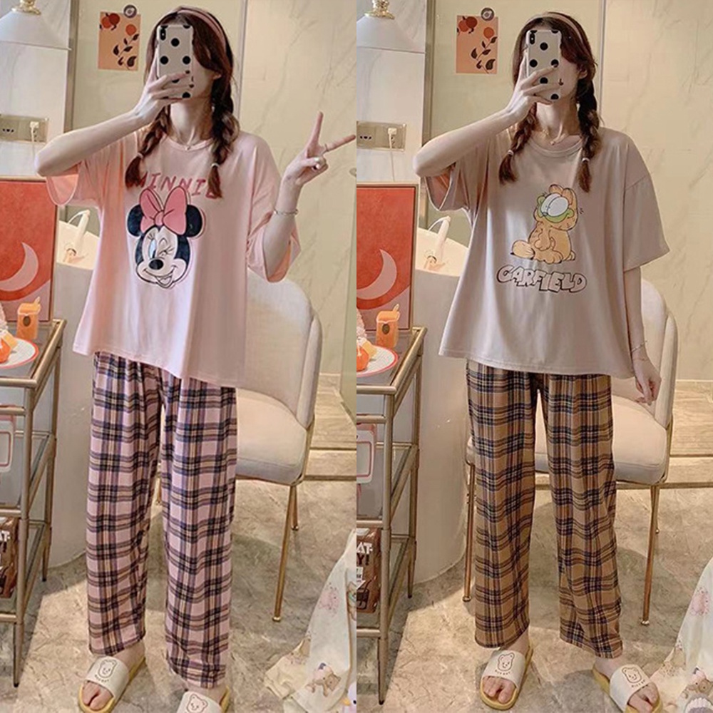 [M-2XL][Lamoda]KOHANA Baju tidur perempuan Short Sleeve Long Pant Wanita set nightwear pyjamas woman Pajamas ladies 睡衣套装
