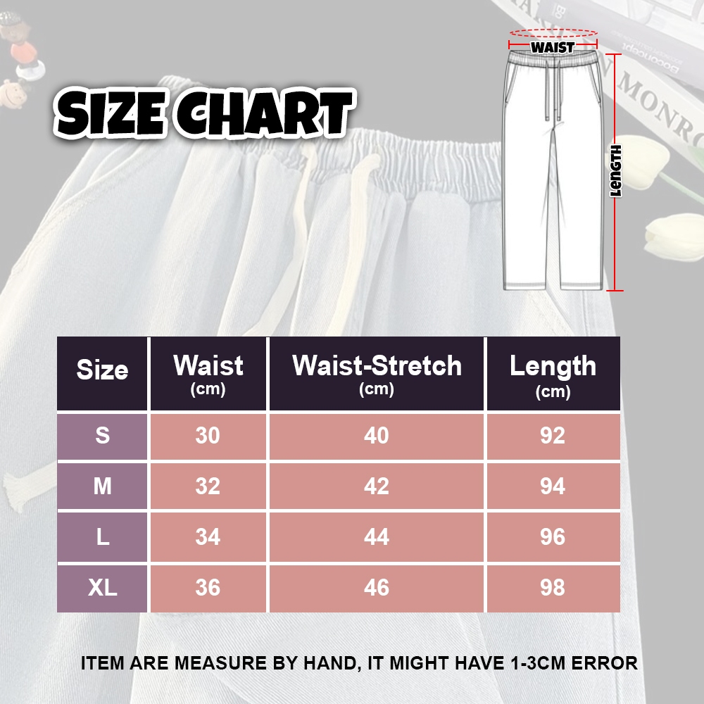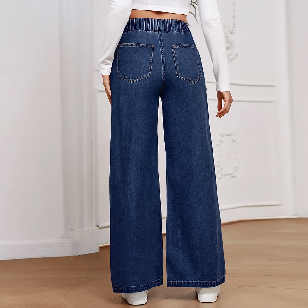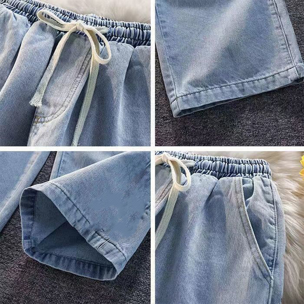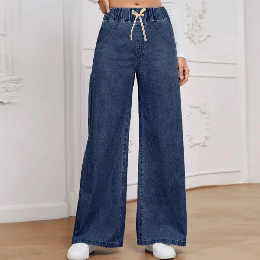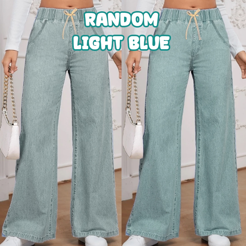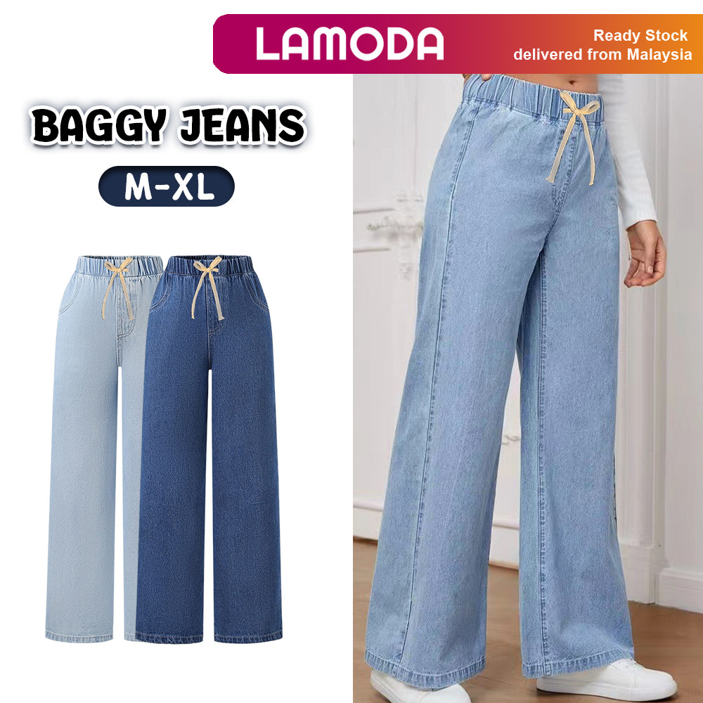 [M-XL][Lamoda] JIHA Women Elastic Waistband Baggy Jeans Straight Cut Loose Seluar Palazzo Denim Pants Wanita Celana