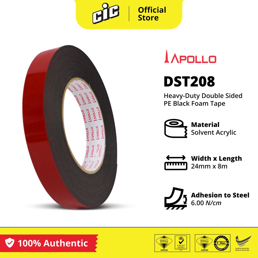 APOLLO Double Sided Heavy-Duty Black Foam Tape (1 Piece x 12mm/18mm/24mm x 8m)