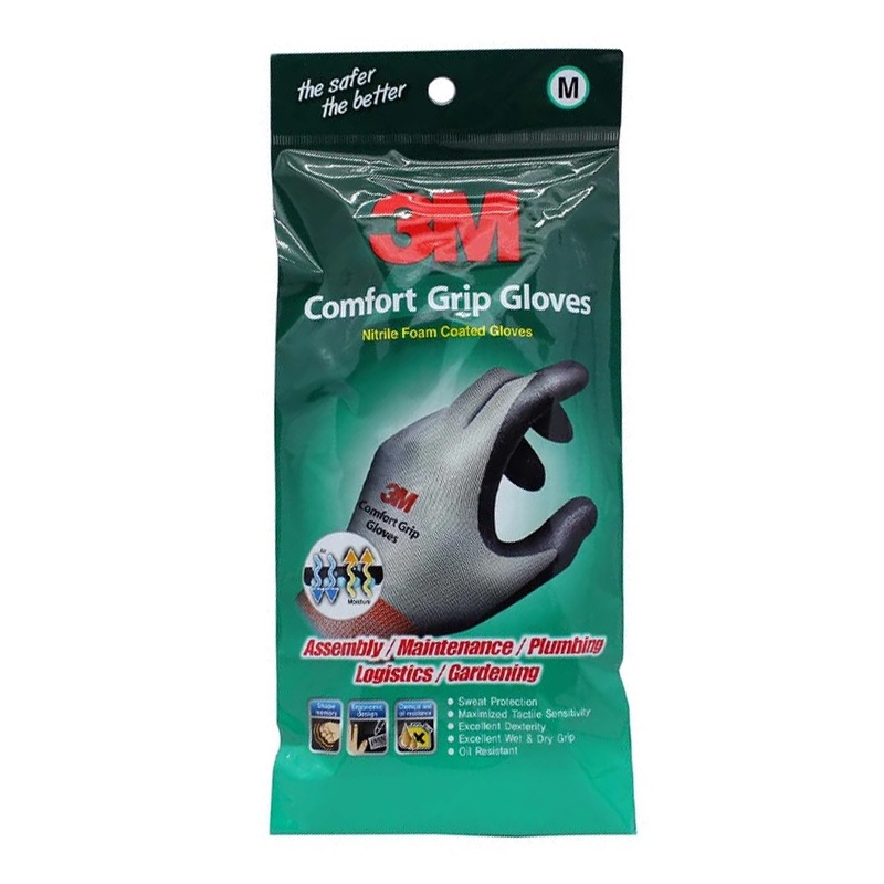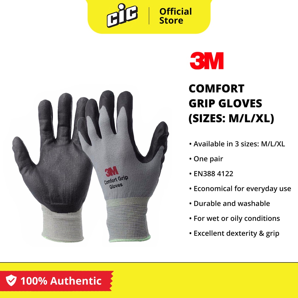 3M Comfort Grip Glove General Use - Grey/Gray (Available in 3 Sizes: M/L/XL)