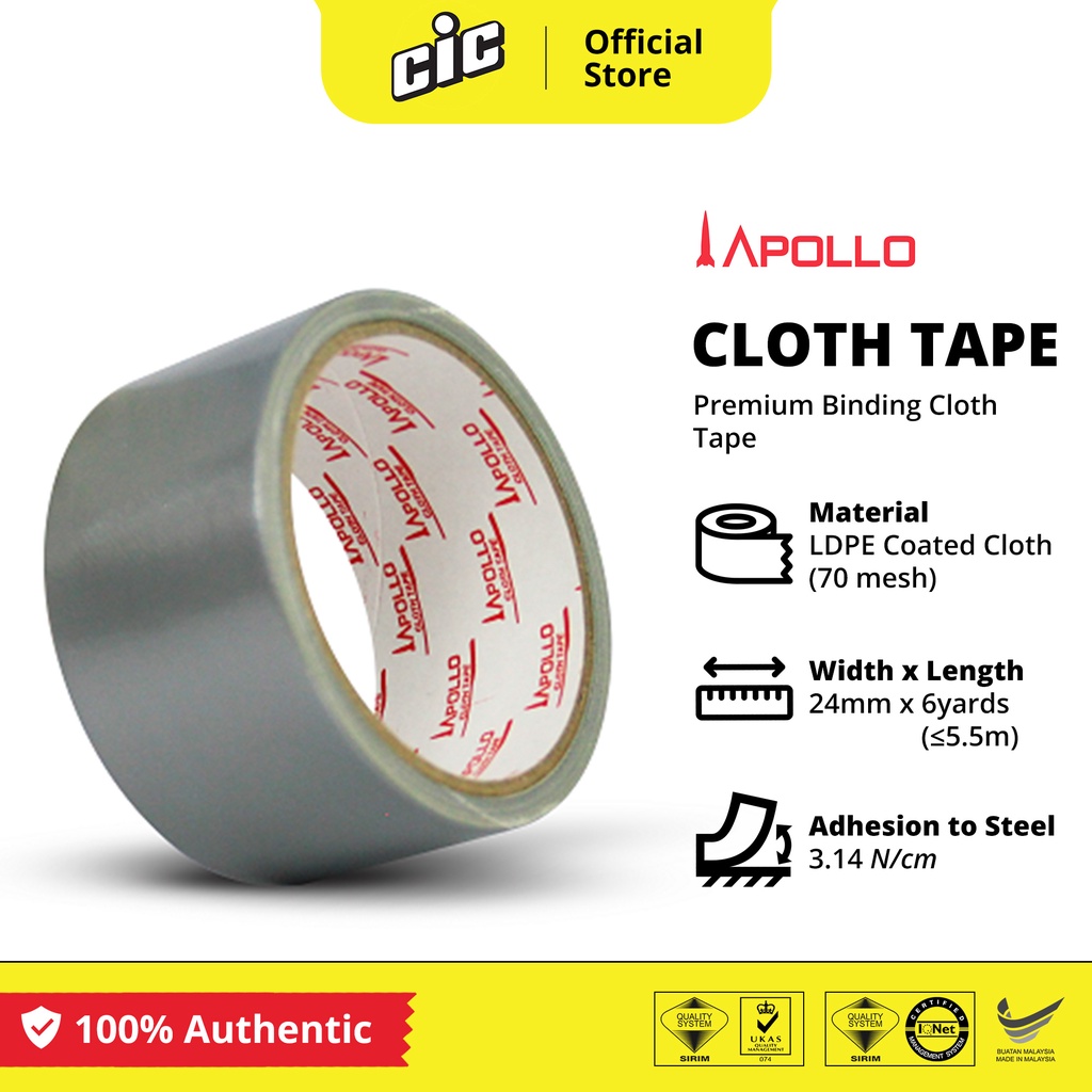 APOLLO Premium Binding Cloth Tape - Silver (1 Piece x 24mm/36mm/48mm x 6yards)