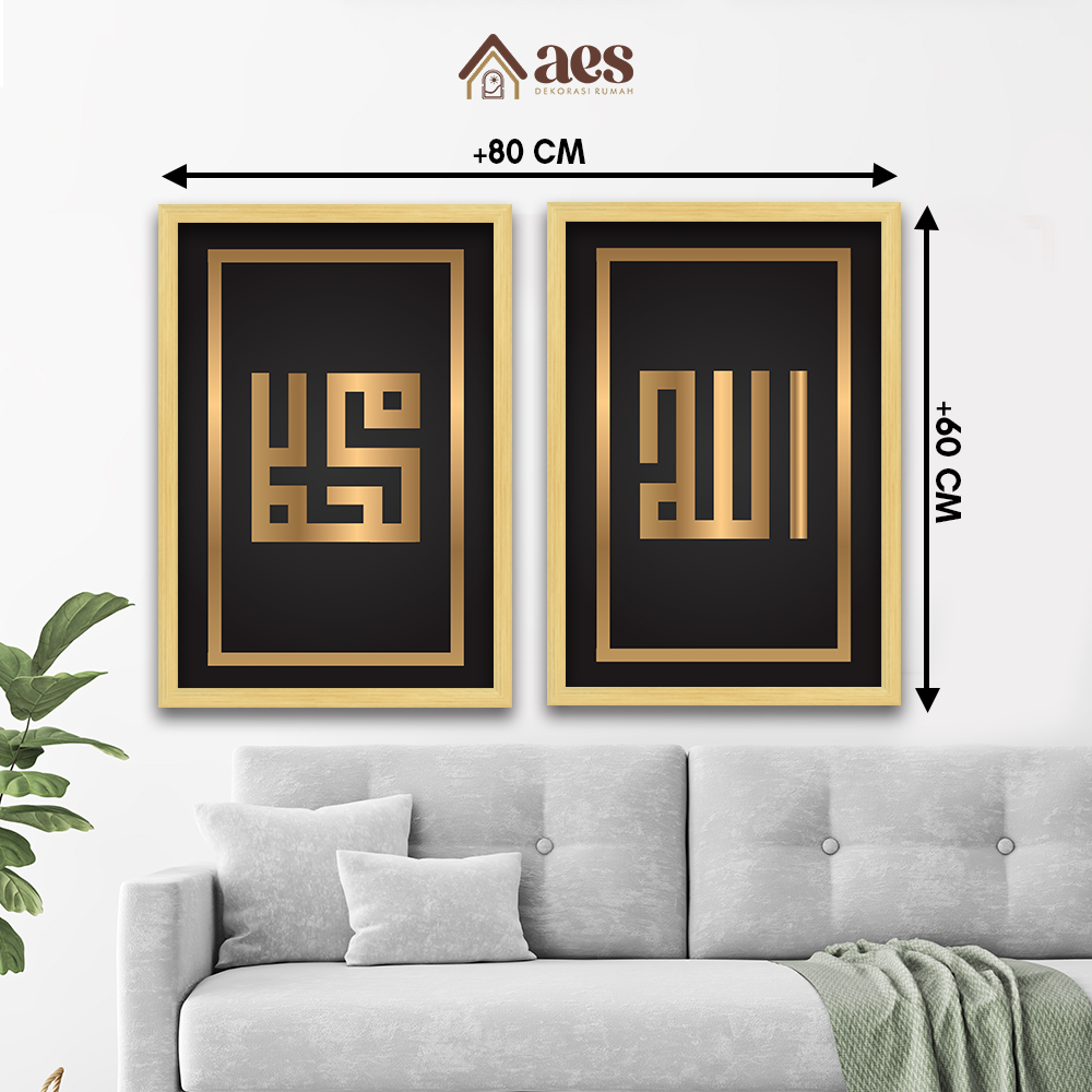 AES Geometric Calligraphy of the Words of Allah Muhammad Gold Frame Dutch Teak 40x60 - KS016 Wall Decoration