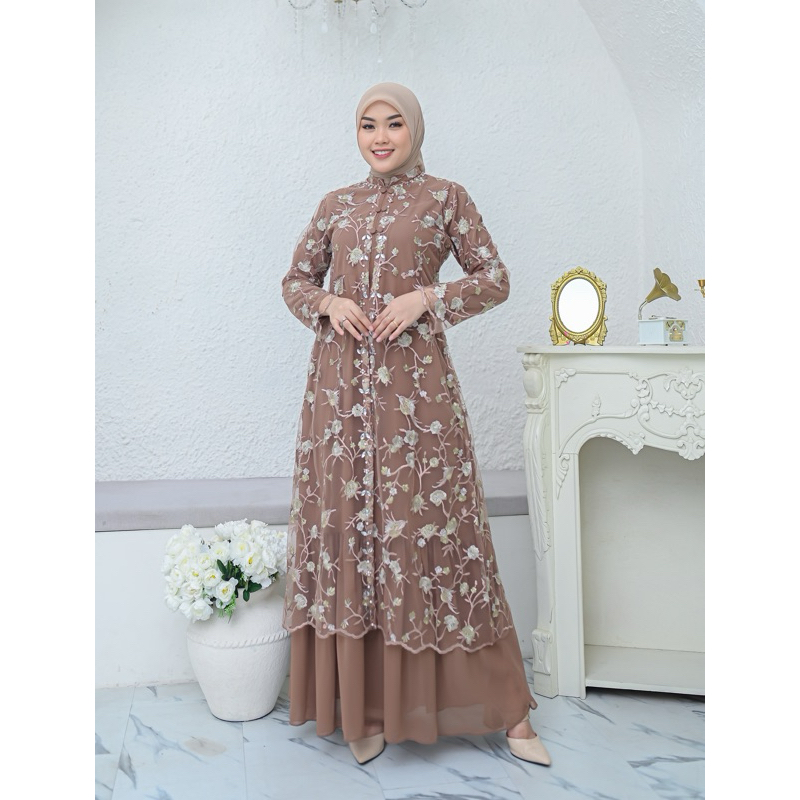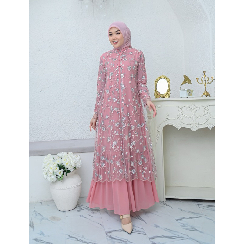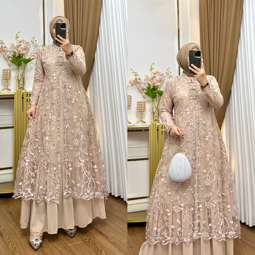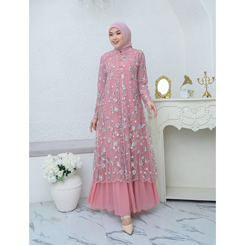 Yamina Dress Busui Ceruty Babydoll Latest Luxury Party Dress Muslim Women's Wedding Dress Eid Clothing Available in Jumbo Size Jubah Muslimah Dress Muslimah