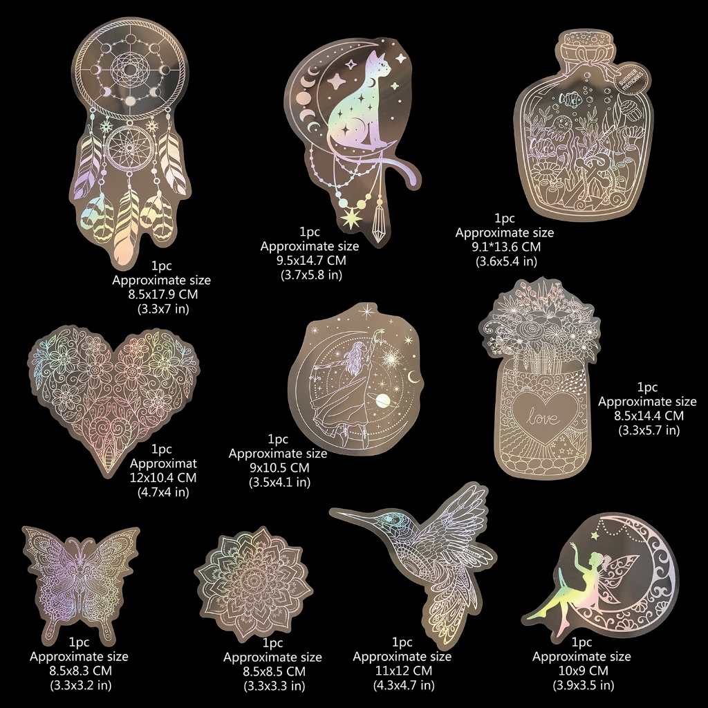 10pcs/pack Larger Stickers Holographic Glitter PET Transparent Shiny Waterproof Adhesive DIY Materials, Maximum Size 8.5 x 17.9 CM / 3.3 x7 in, Minimun Size 8.5 x 8.3CM / 3.3 x 3.2
