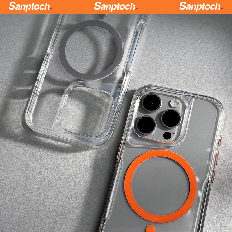 Sanptoch For Magnetic Crystal Clear Phone Case For iPhone 17 16 15 14 13 12 Pro Max Soft TPU Edge + Acrylic Hard Cover Transparent Military Shockproof Protection Casing