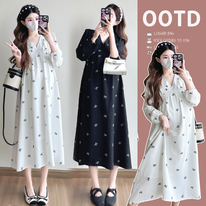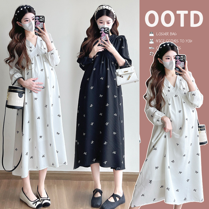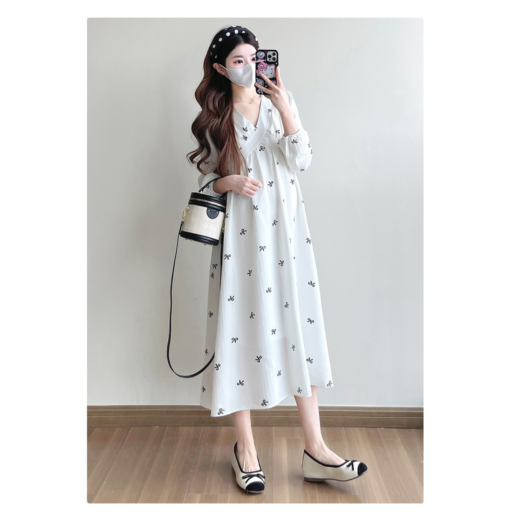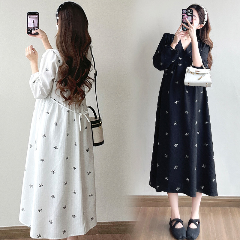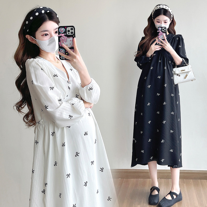 Maternity Wear 2025 Spring Summer New Style French Temperament Slimmer Look Mid-Length Maternity Dress