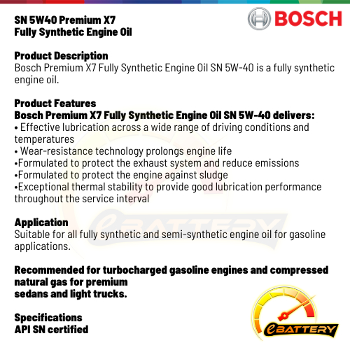 BOSCH SN 5W30 5W40 10W40 10W30 0W20 Premium X7 Fully Synthetic Engine Oil (Minyak Hitam) - 4L GENUINE