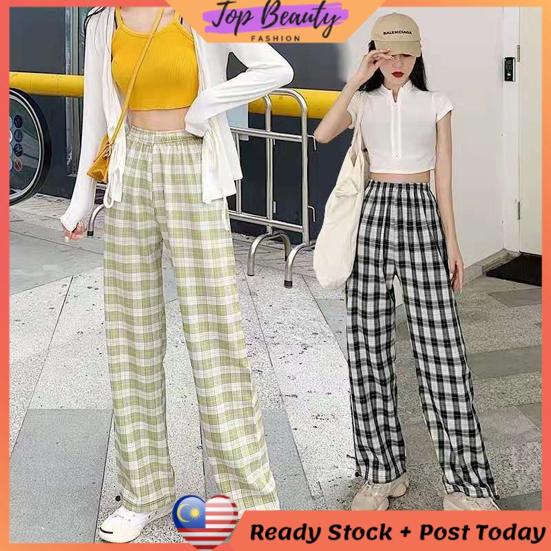 [Ready Stock] Wide leg pants women casual pants 2021 new Korean style high waist straight casual loose on sale