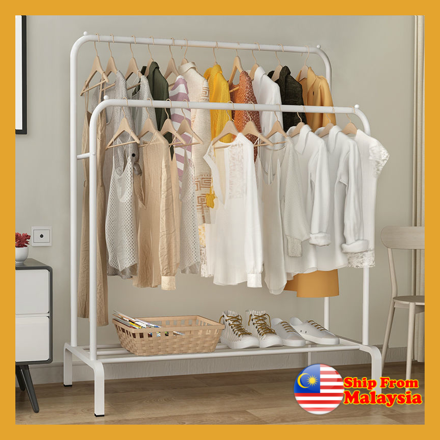 Rak Penyangkut Baju Besi Kukuh 110cm Lebar Single/Double Pole Strong Steel Cloth Hanger 110cm Width Cloth Rack