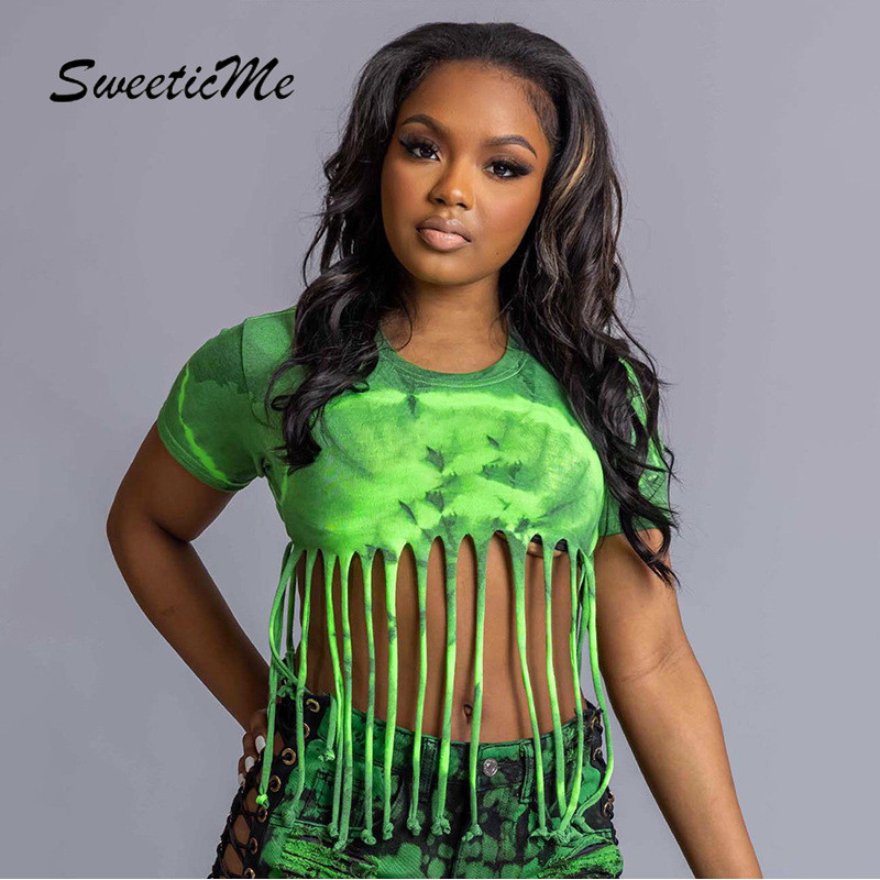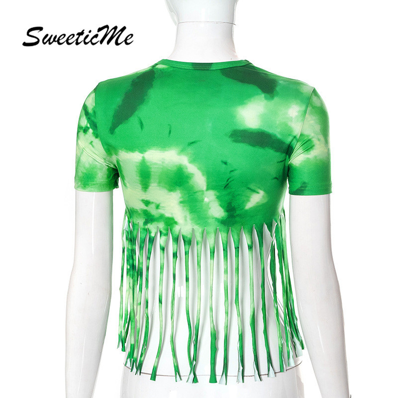 SweeticMe Women's Short Sleeve T-Shirt - Trendy Round Neck with Tassels 2026