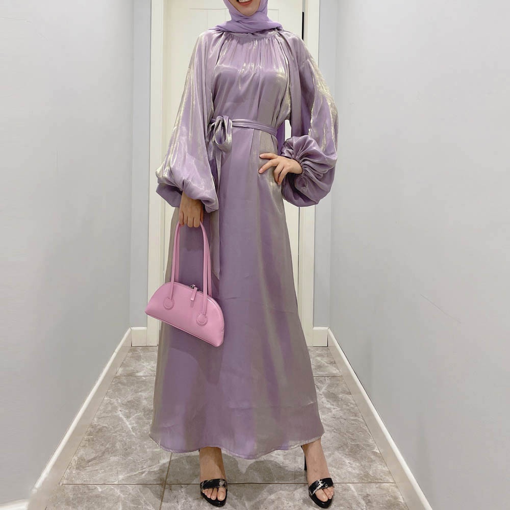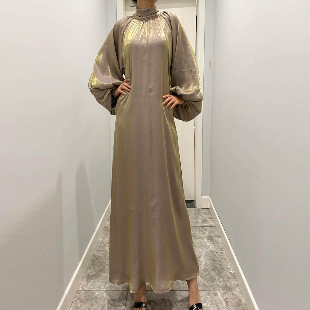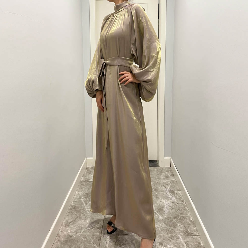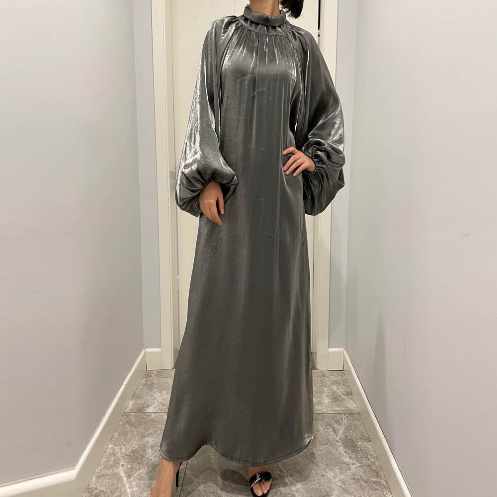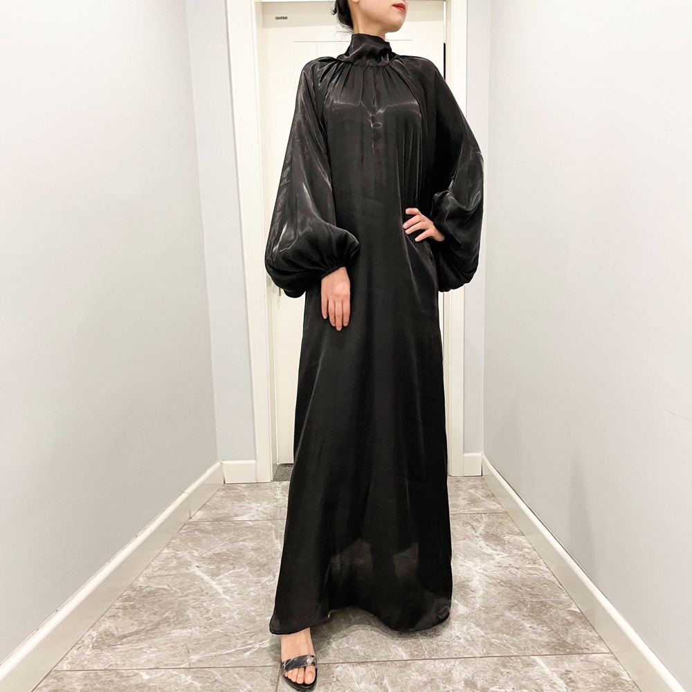 Maxi Dresses Lantern sleeve dress Muslim abaya baju Muslimah robe women wear stand collar dress