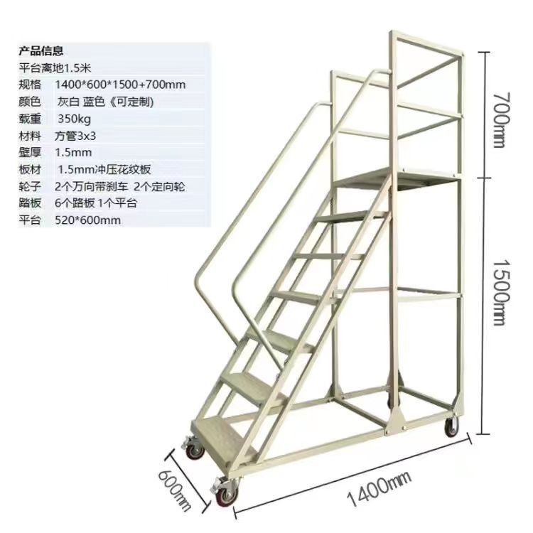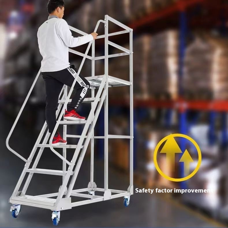 Warehouse supermarket climbing ladder mobile steps with wheels thickened guardrail tally removable shelves Tangga naik