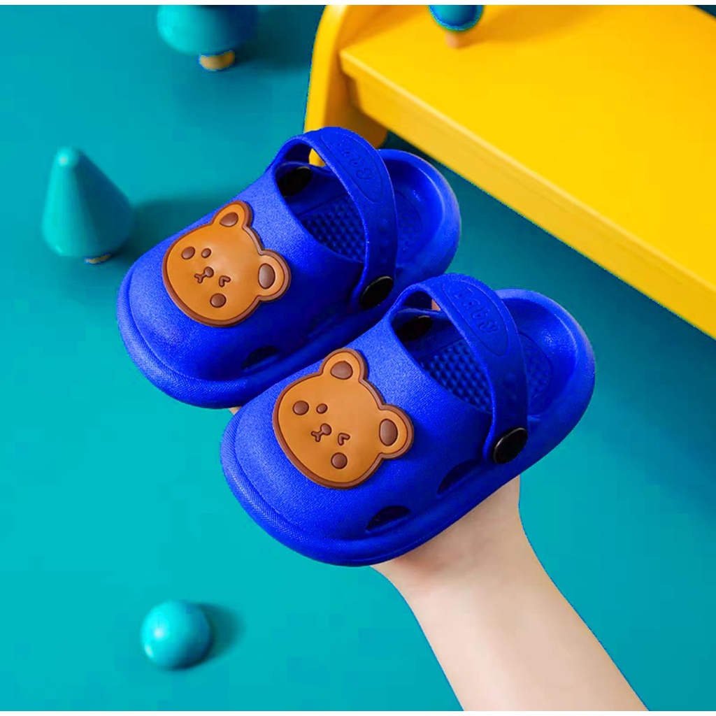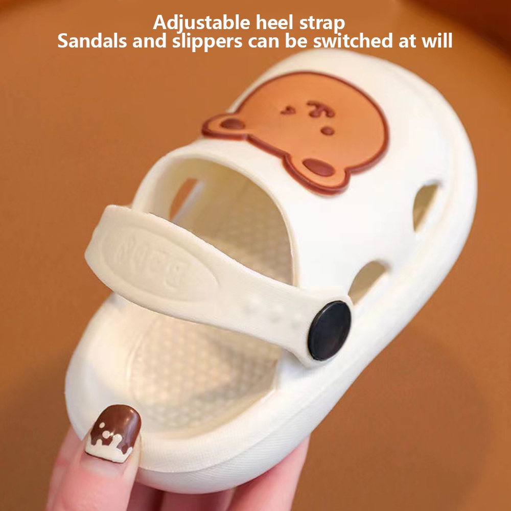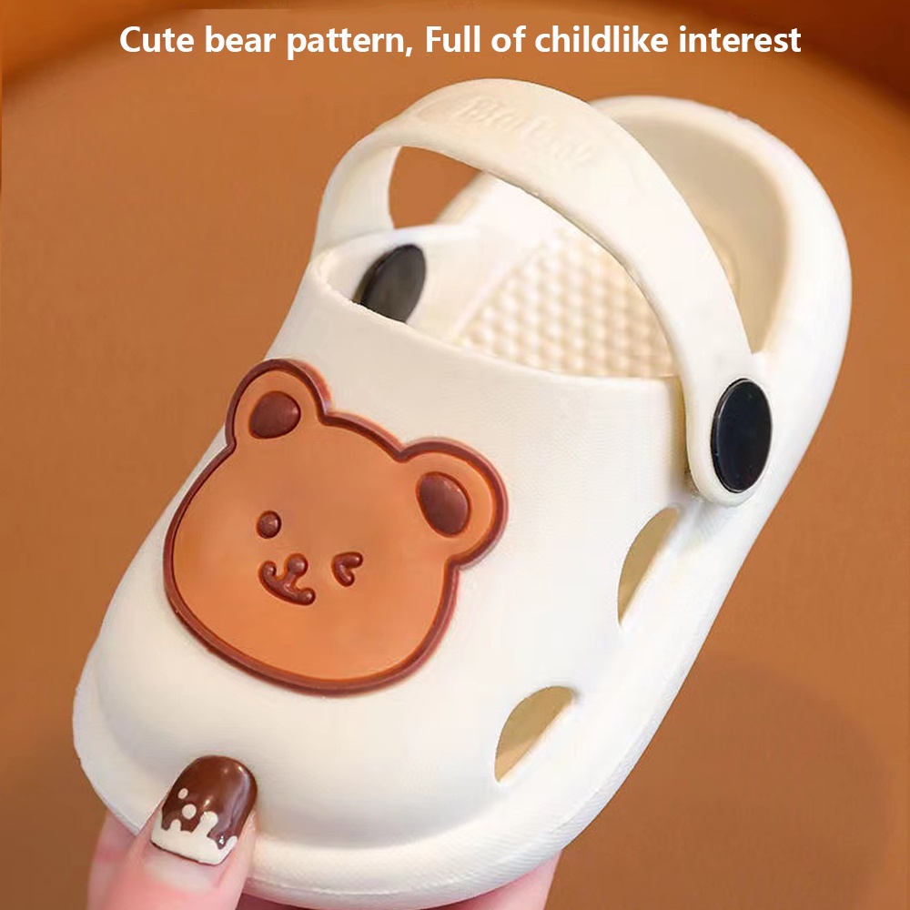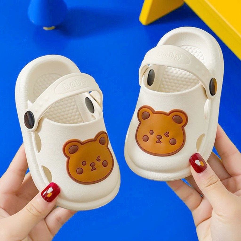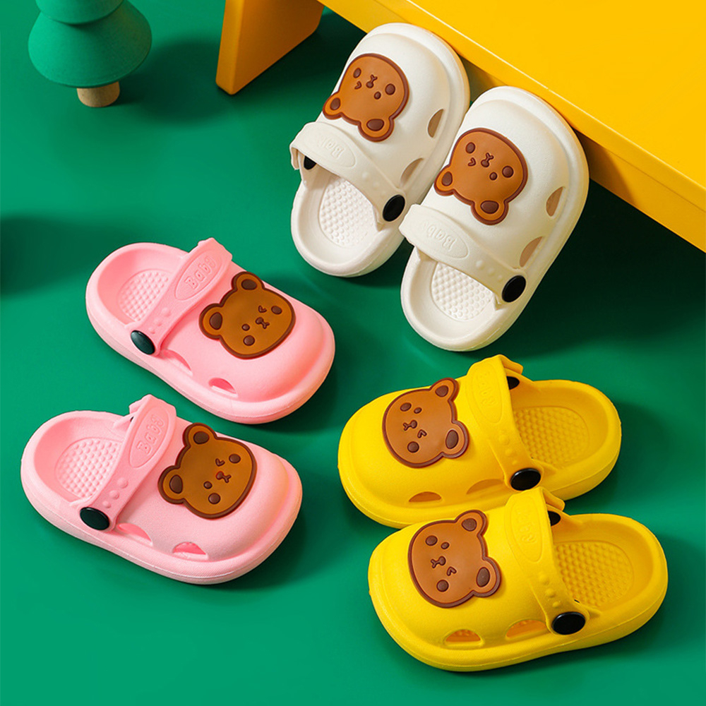 lakoe 1-4 Years Baby Kids Slippers Cute Bear Boys Girls Walking Slipper Non-slip Sandals Beach Shoes Selipar Bayi Budak