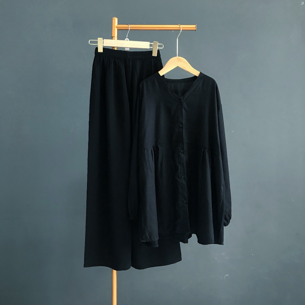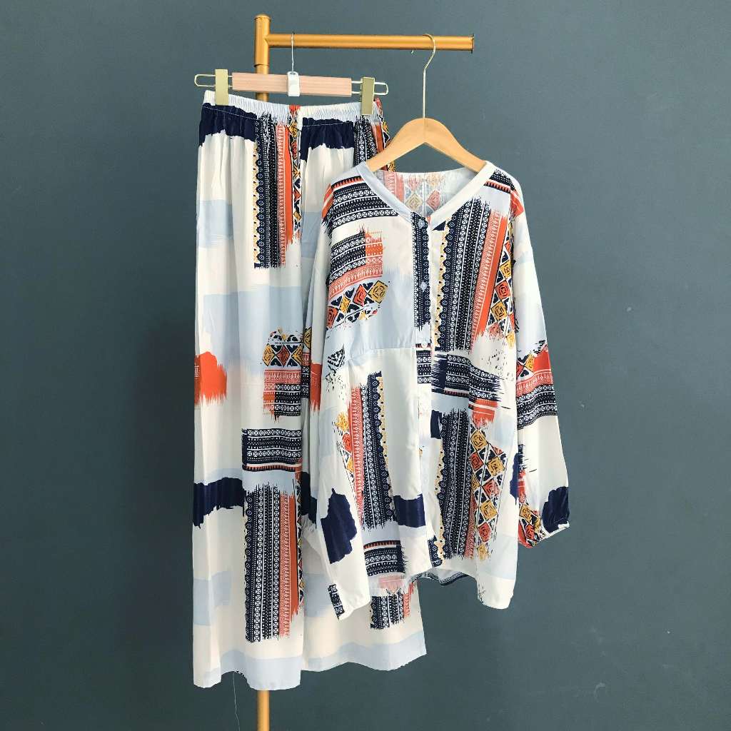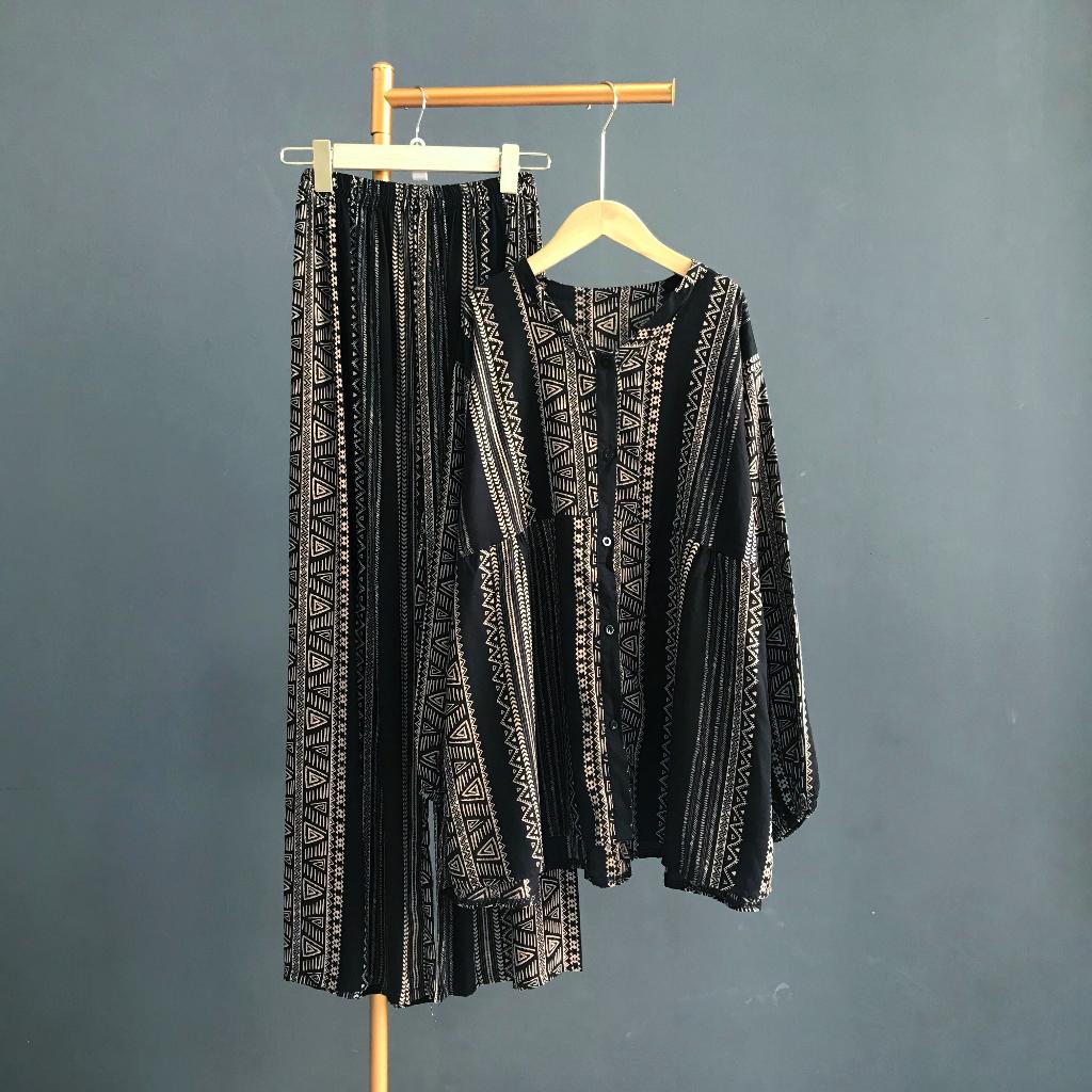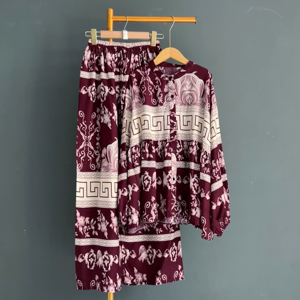 KEMEJA KALLYOUTFIT BLOUSE SHIRT LONG PANTS SET COOL RAYON CULOT SHIRT SET