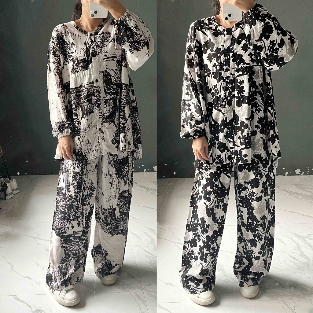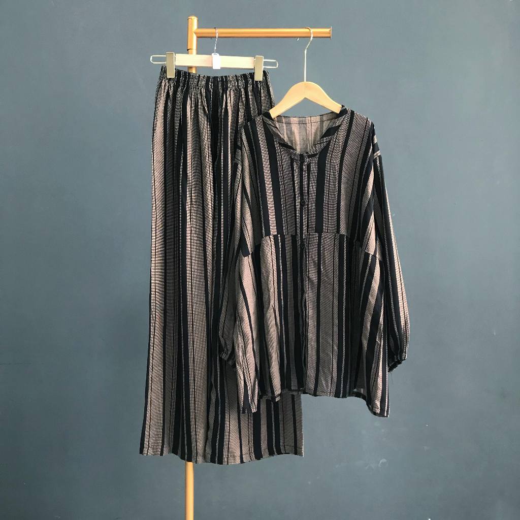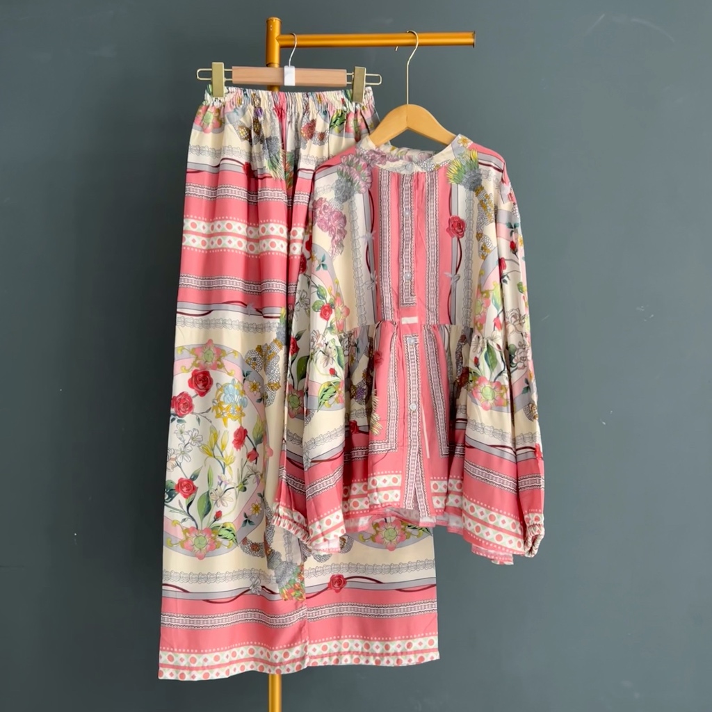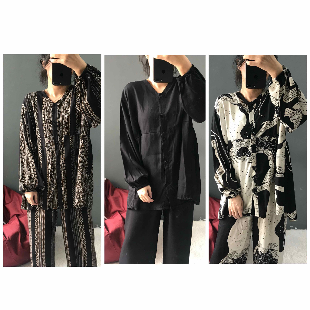 KEMEJA KALLYOUTFIT BLOUSE SHIRT LONG PANTS SET COOL RAYON CULOT SHIRT SET