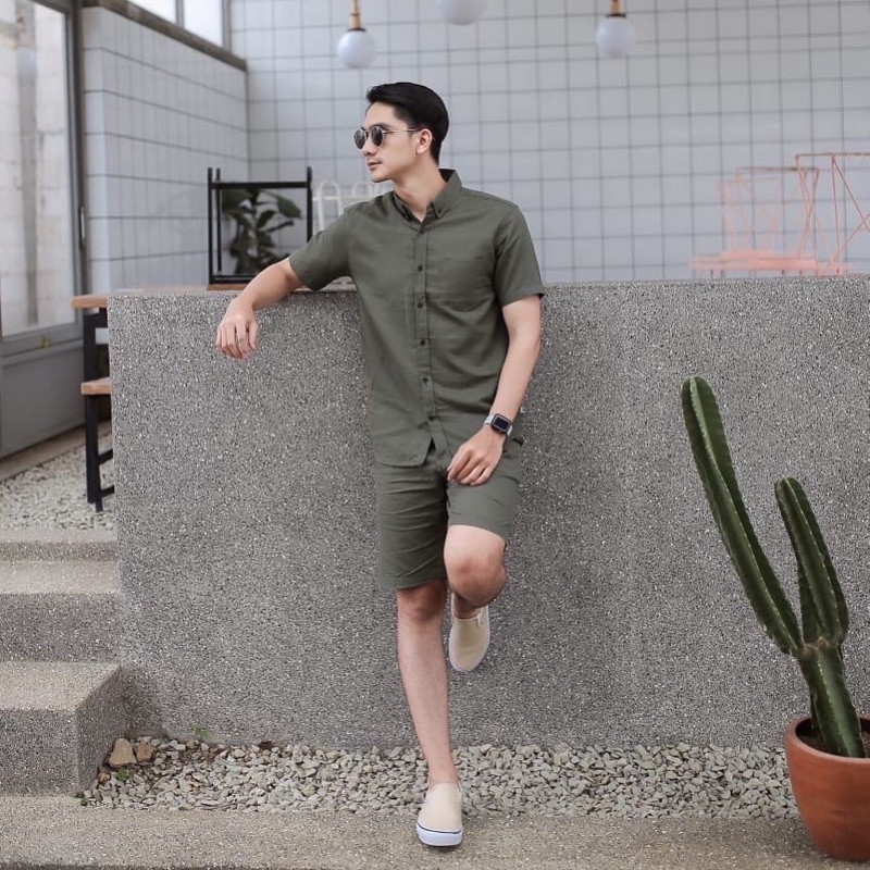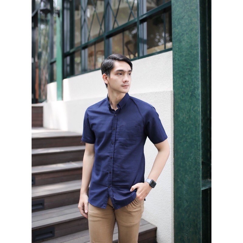 KEMEJA Men's Short Sleeve Mahogany Brown Shirt baju kemeja lelaki