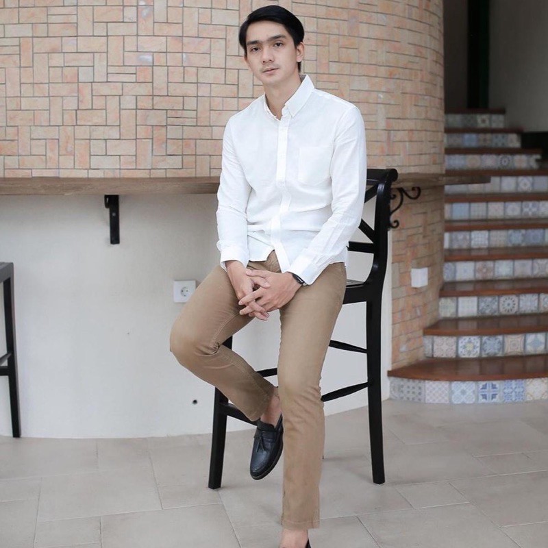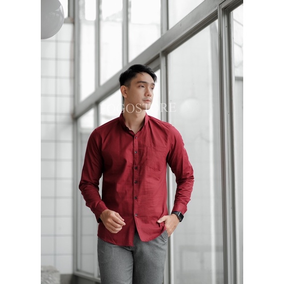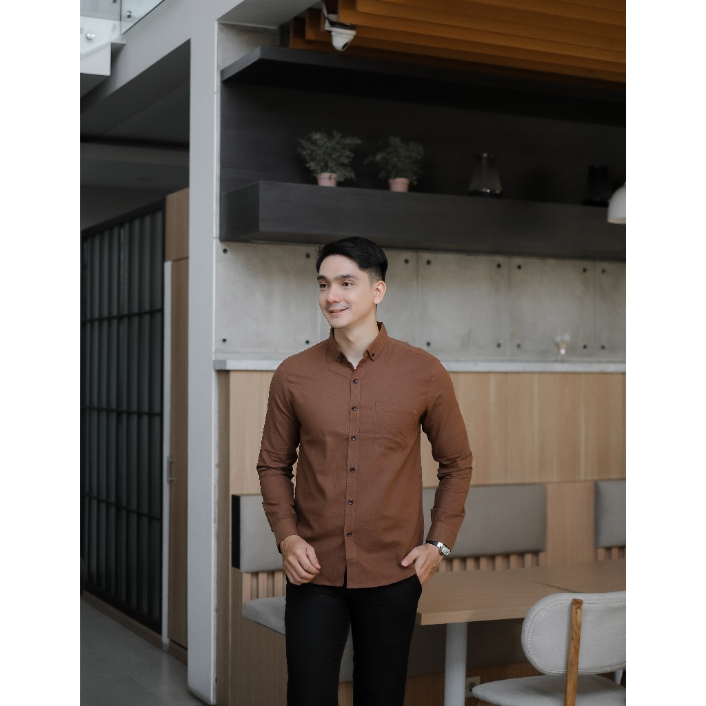 KEMEJA Men's Long Sleeve Mahogany Brown Shirt Men's Plain Shirt/