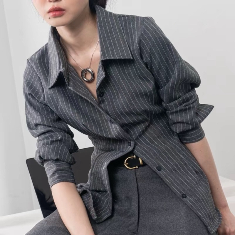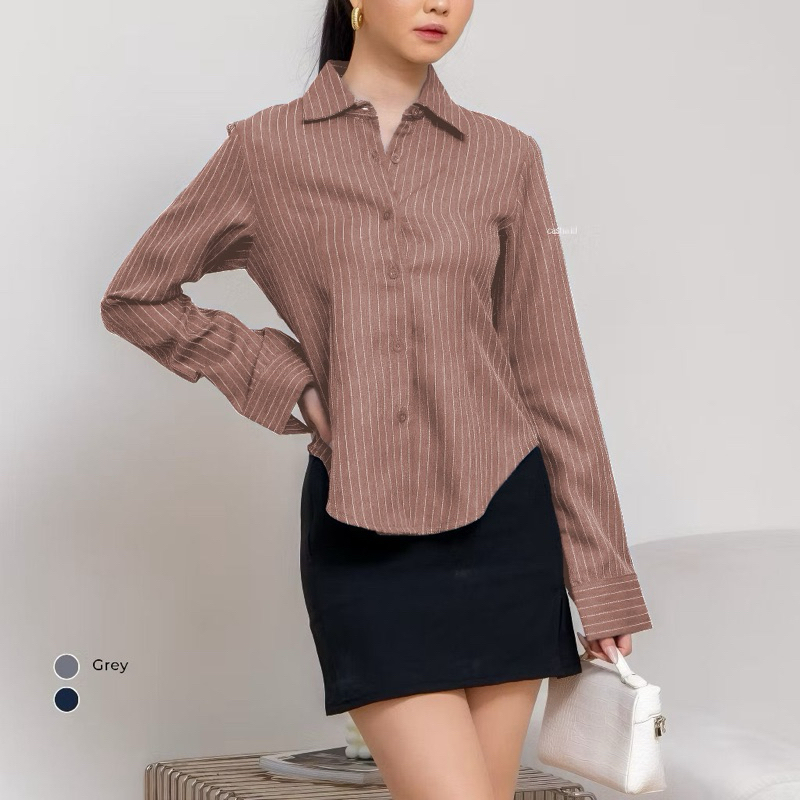 KEMEJA Womscloth - Luna stripe Fitted Shirt - Women's Shirt - Women's Striped Top - Basic Long Sleeve Shirt - Formal Casual Office Shirt