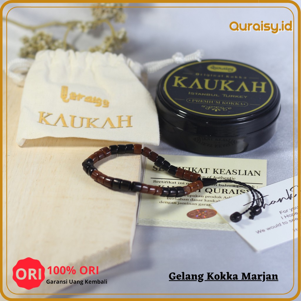 Quraisy Kaukah - Kaoka Marjan Prayer Beads Bracelet + Original Kaukah Ring Kaokah Kaoka Kaukah Kauka Koka Tasbih Kayu Kokka Asli 100%