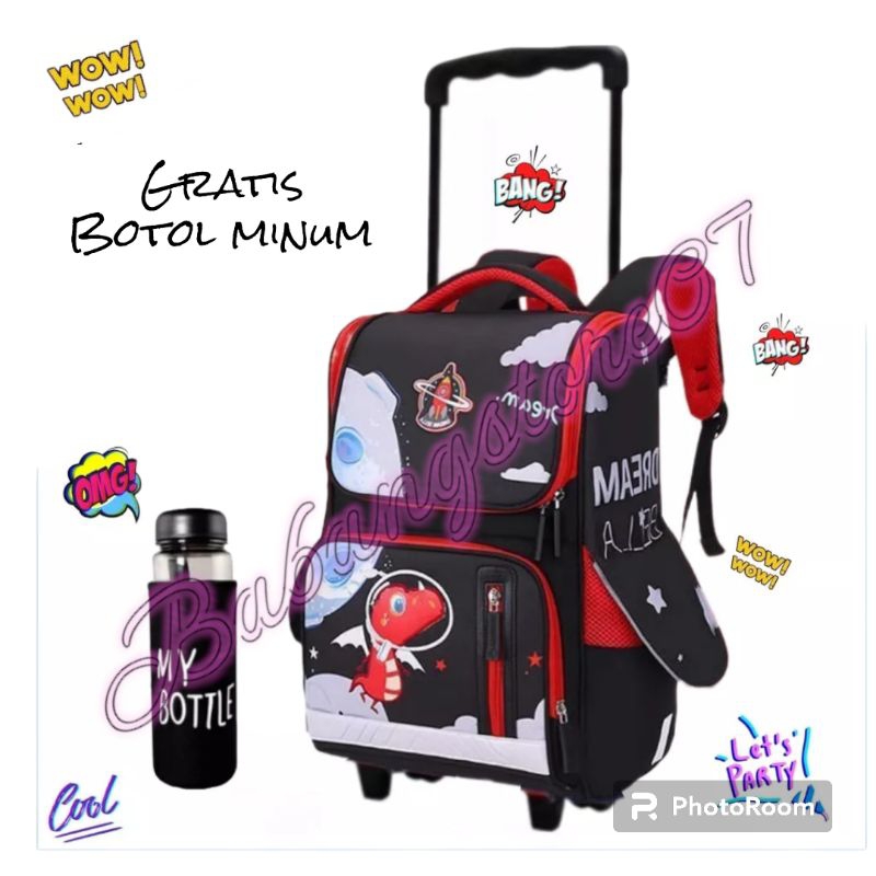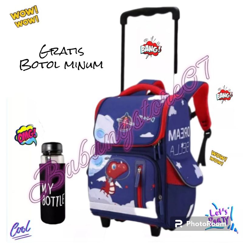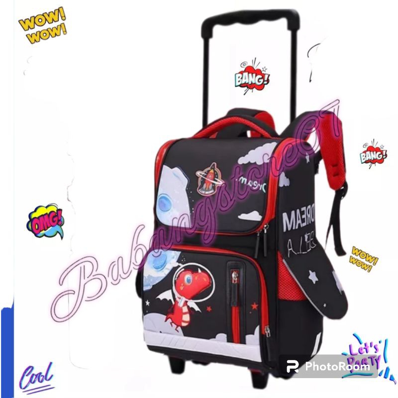Dinosaur Trolley Bag for Boys Kindergarten-Elementary School Children's Push Backpack