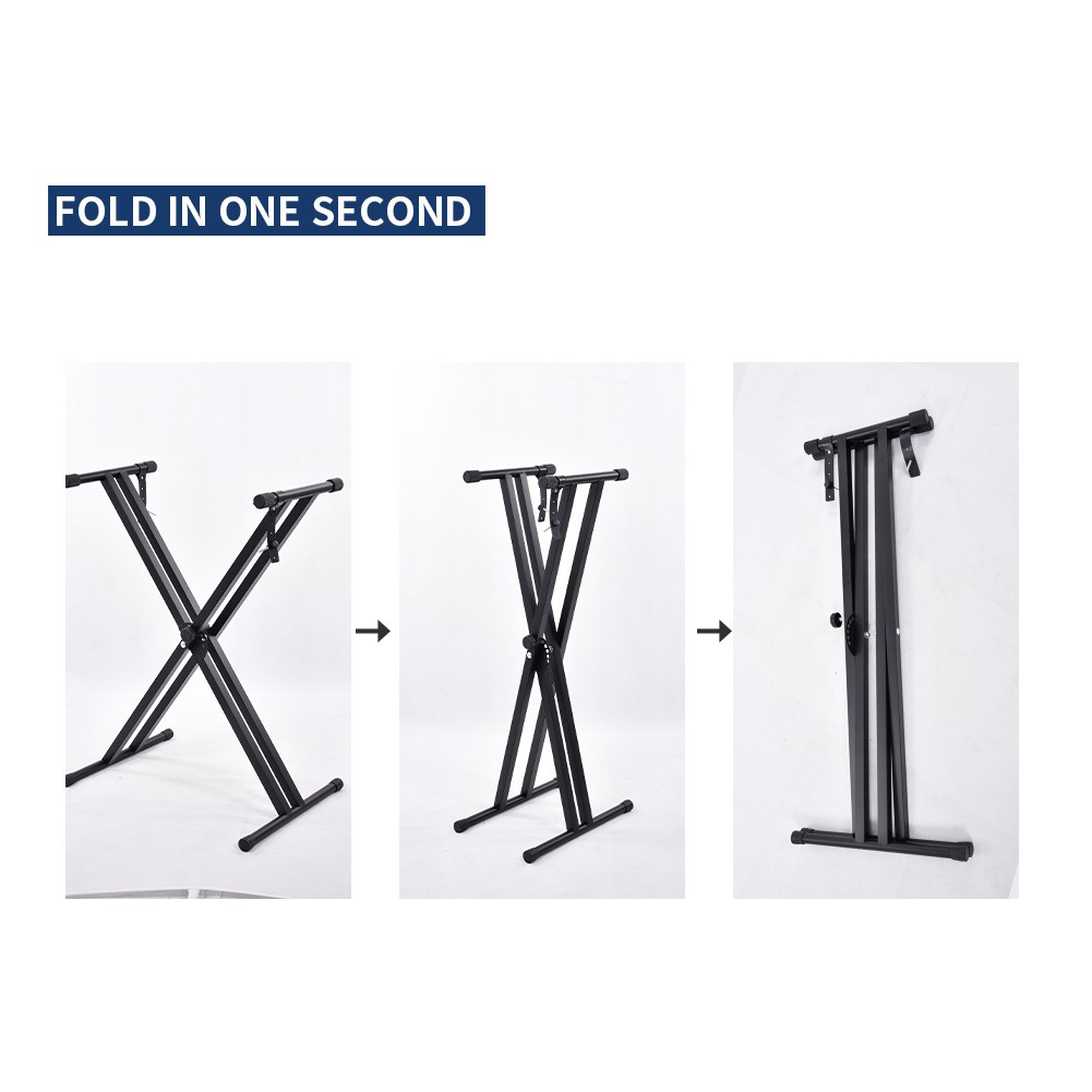 RM Foldable Portable Double X Keyboard Piano Stand Solid Heavy Duty Piano Keyboard Stand 7 Level Height Adjustable