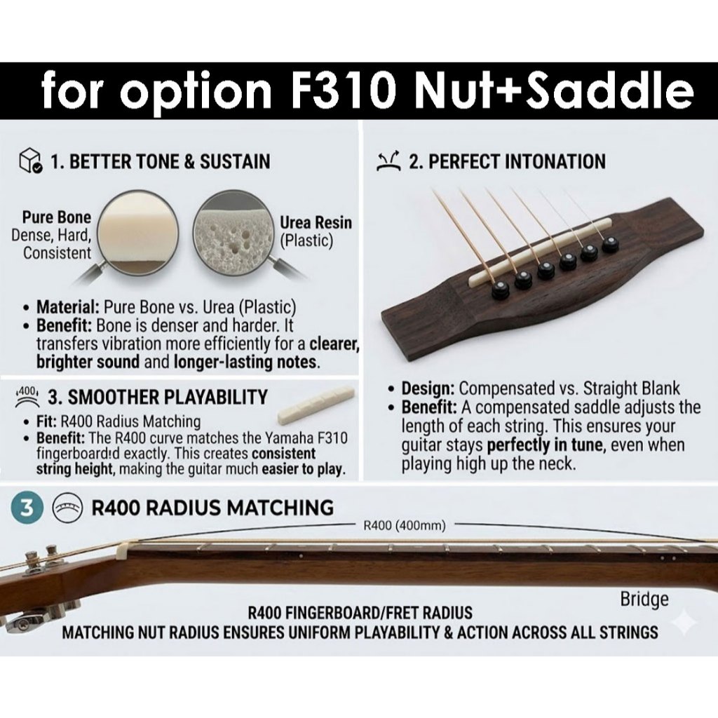 RM Acoustic Guitar BONE Top Nut Bottom Saddle 72mm 74mm 76mm 80mm NUT Saddle Akustik Gitar Kapok 【M'sia READY STOCK!】