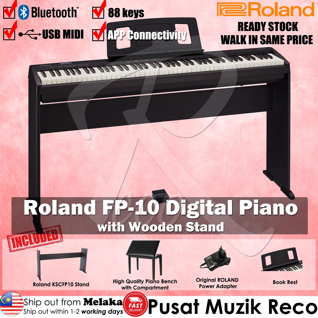 Roland FP-10 FULL SET 88 keys Digital Piano with Bench, Wooden Stand, DP-2 Pedal, Note Stand and Adapter (FP 10 FP10)