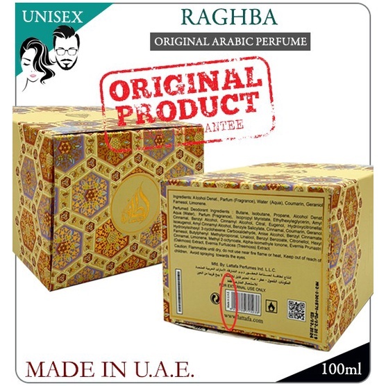 💥Ready Stock💥RAGHBA ORIGINAL ARABIC PERFUME EDP BY LATTAFA DUBAI Perfume for Men & Women| Fragrance