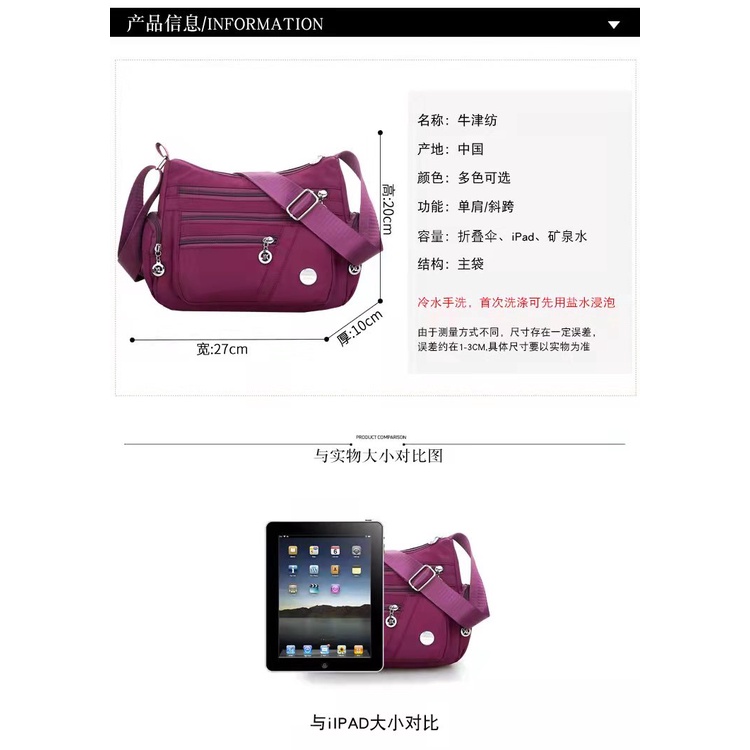 Beg Tangan Kalis Air Wanita Perempuan Waterproof Women Handbag Nylon Sling Travel Bag Woman Ladies