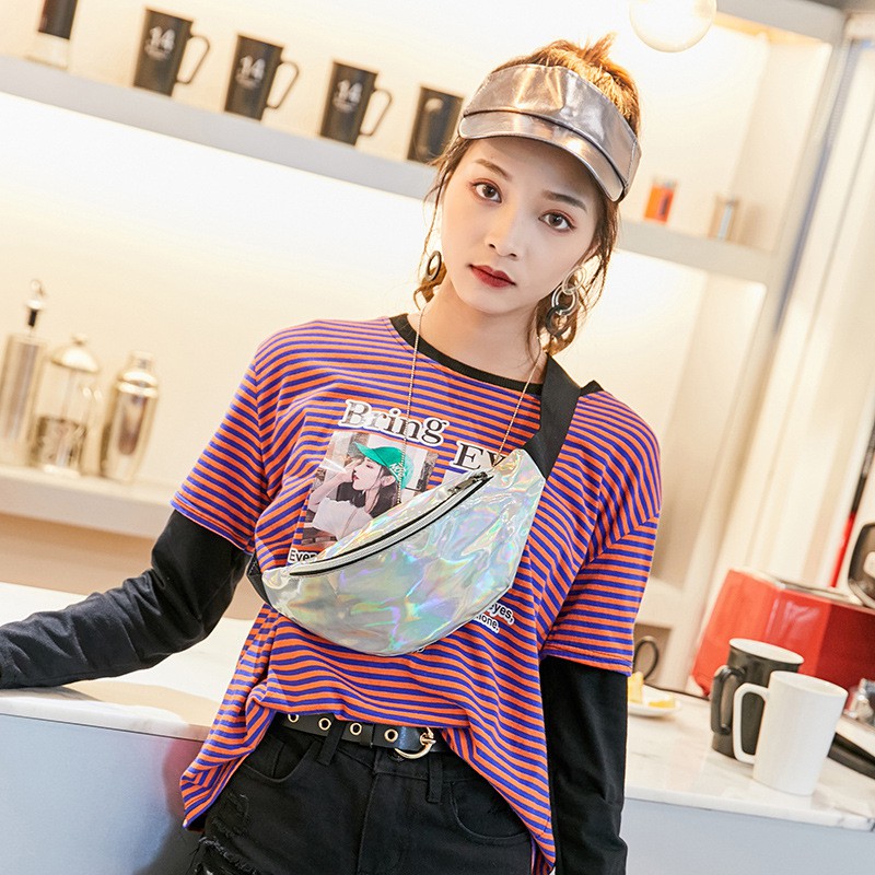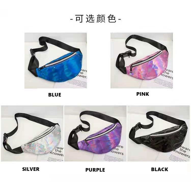 W-ZLX-047 Woman Casual Waist Bag Reflective Shiny Holographic Beg Pinggang Wanita Lady Perempuan