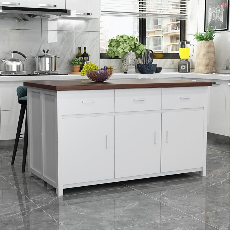 Solid wood kitchen island, open bar counter, rectangular dining table, modern minimalist light luxury table