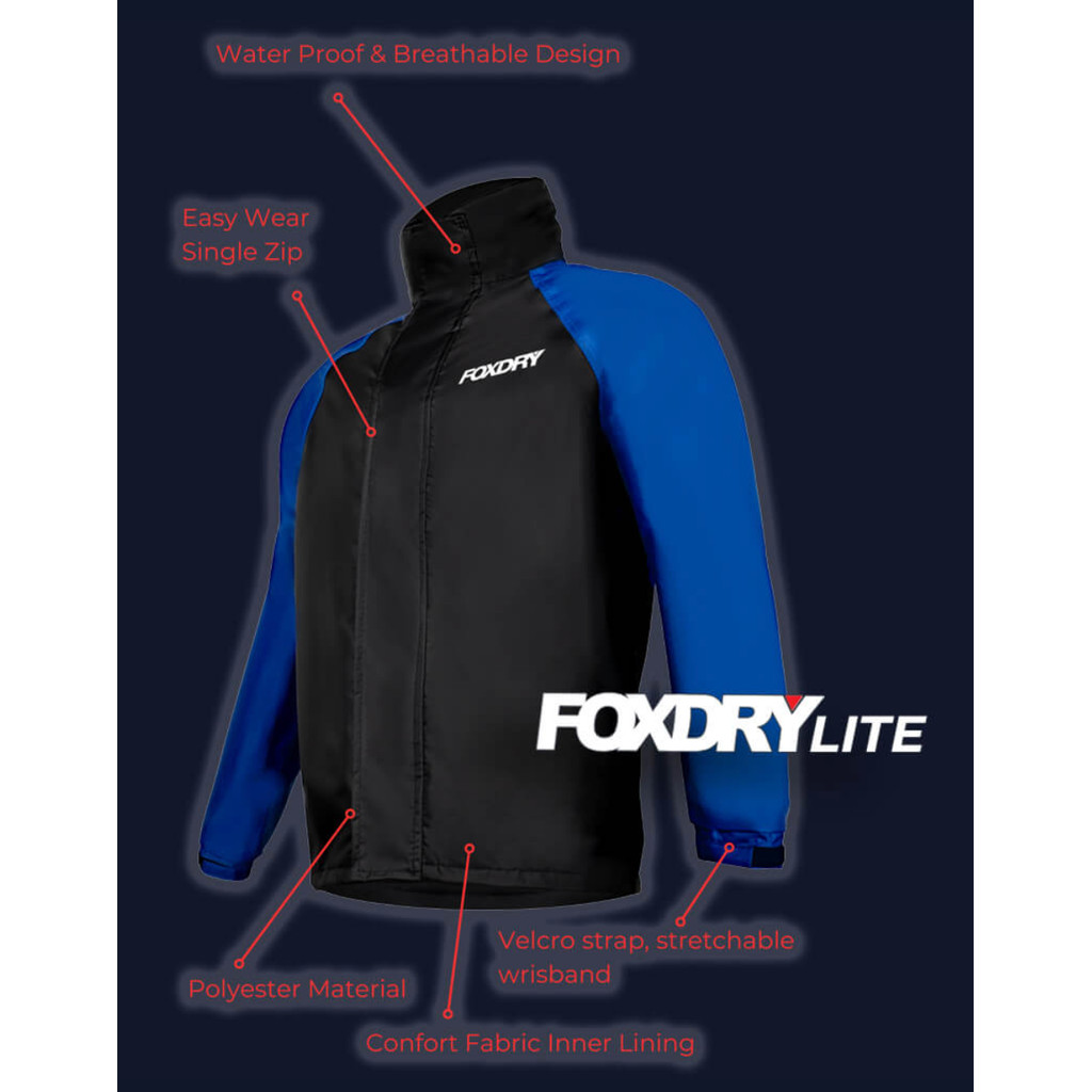 FOXDRY LITE V2 WATERPROOF RAINCOAT BAJU HUJAN JAKET HUJAN MOTORSIKAL