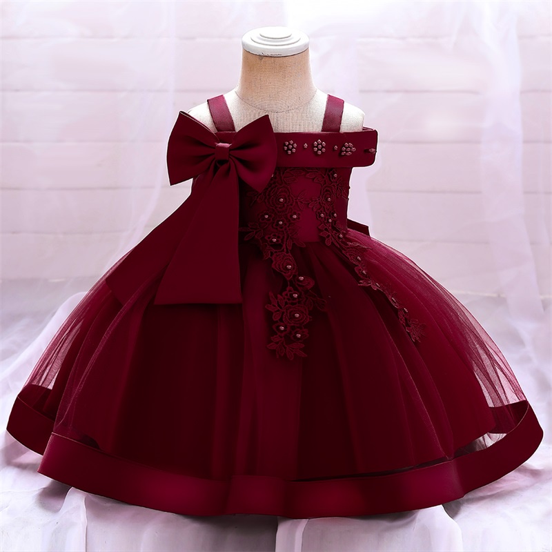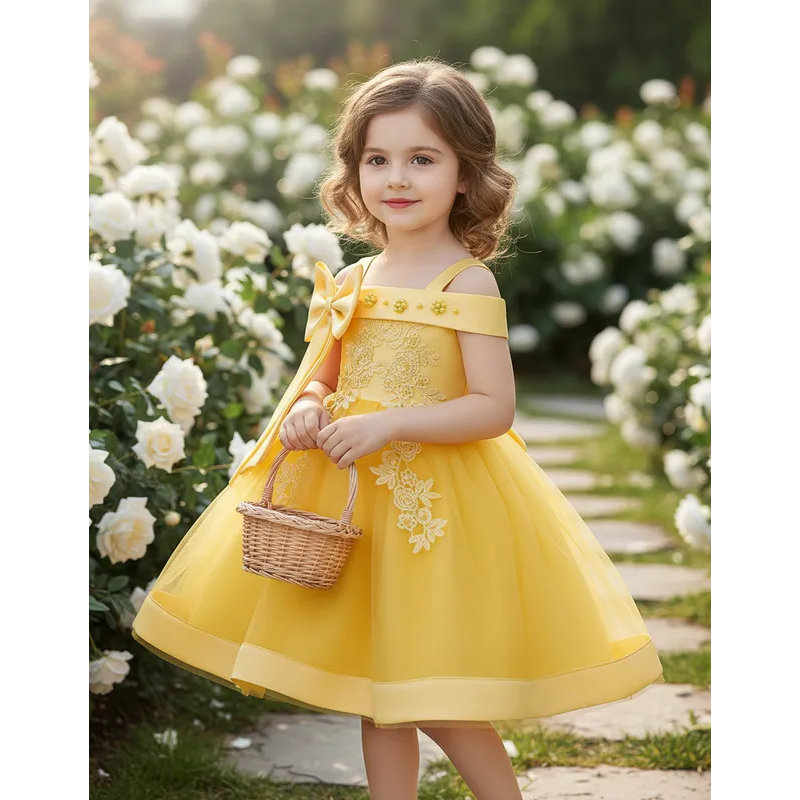FSMKTZ Girl's Princess Dress with Embroidered Print Children's Spaghetti Strap Dress Birthday Gown L5081XZ