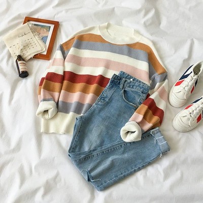 Women Ladies O-Neck Long Sleeve Knit Top Sweaters Shirts Loose Blouse