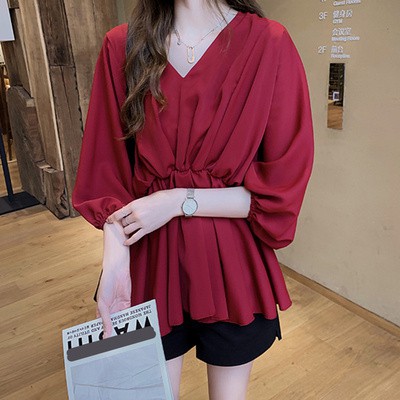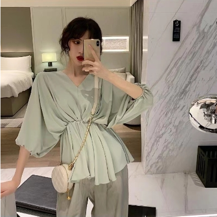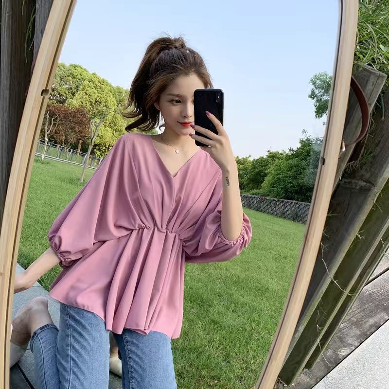 korean style women ladies chiffon shirt blouse baju baju wanita lengan panjang
