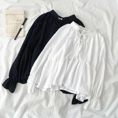 korean style women ladies chiffon shirt blouse baju baju wanita lengan panjang